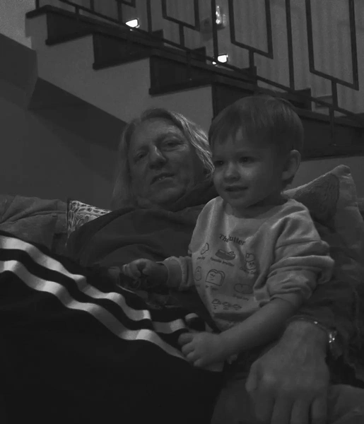 Александр Олейников с внуком