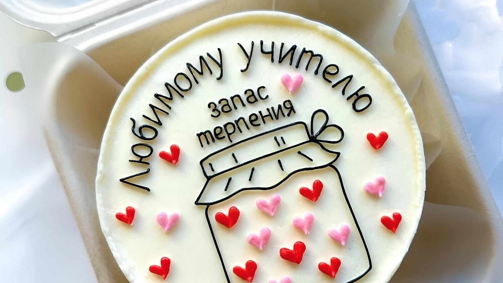 Обаятельного учителя можно порадовать бенто-тортом с забавной надписью: он точно оценит такой знак внимания.