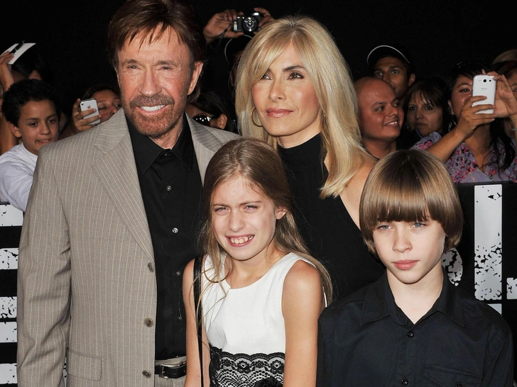Чак Норрис с женой и близнецами