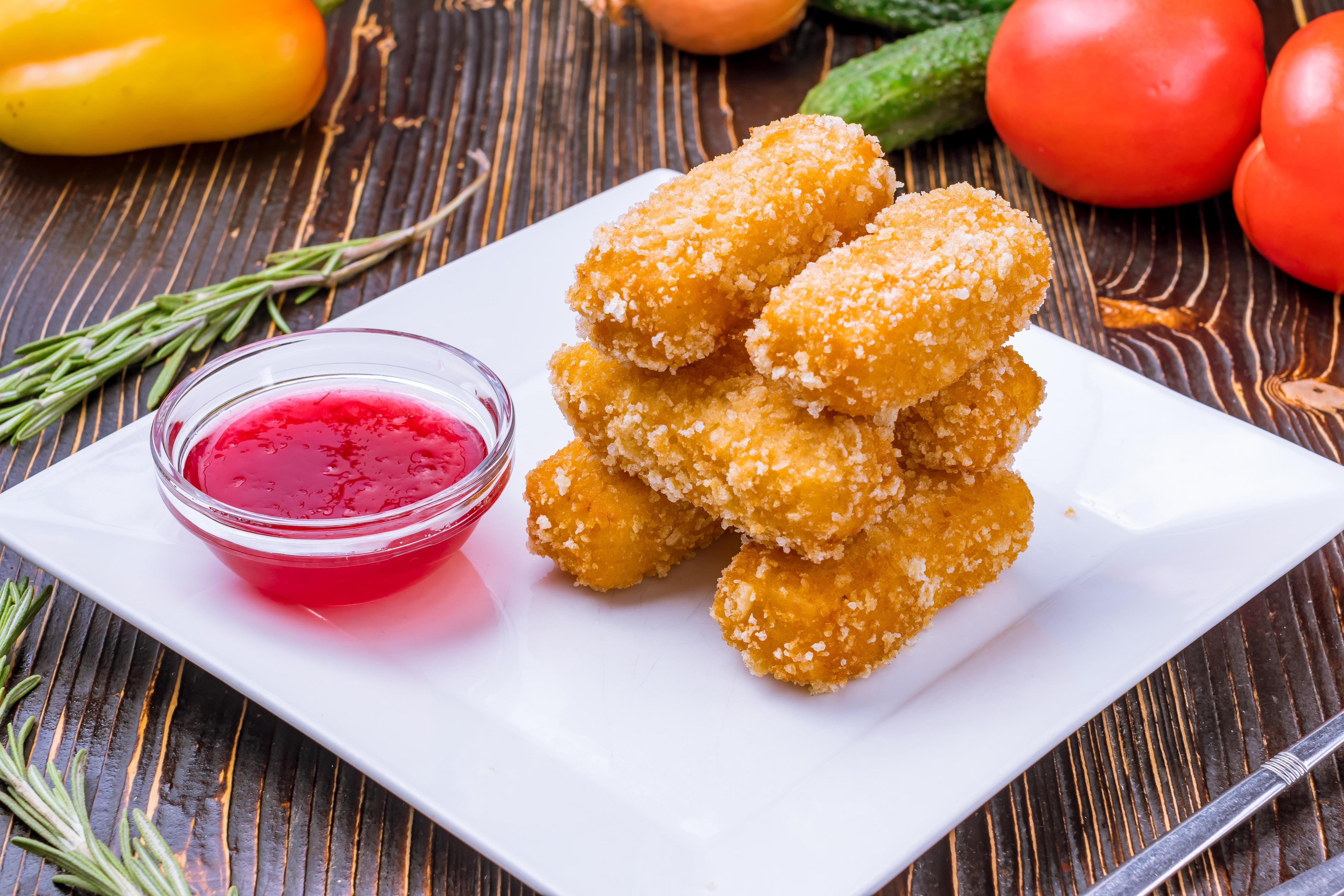Подавайте горячими с соусом по вашему выбору. Рекомендован любой ягодный кисло-сладкий соус.