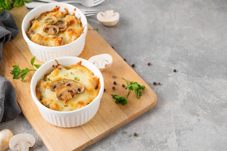 Этот жюльен точно удивит ваших гостей. Одно из его больших достоинств — подача, удобная для еды, даже если вам захотелось выйти из-за стола и съесть что-то “на ходу»