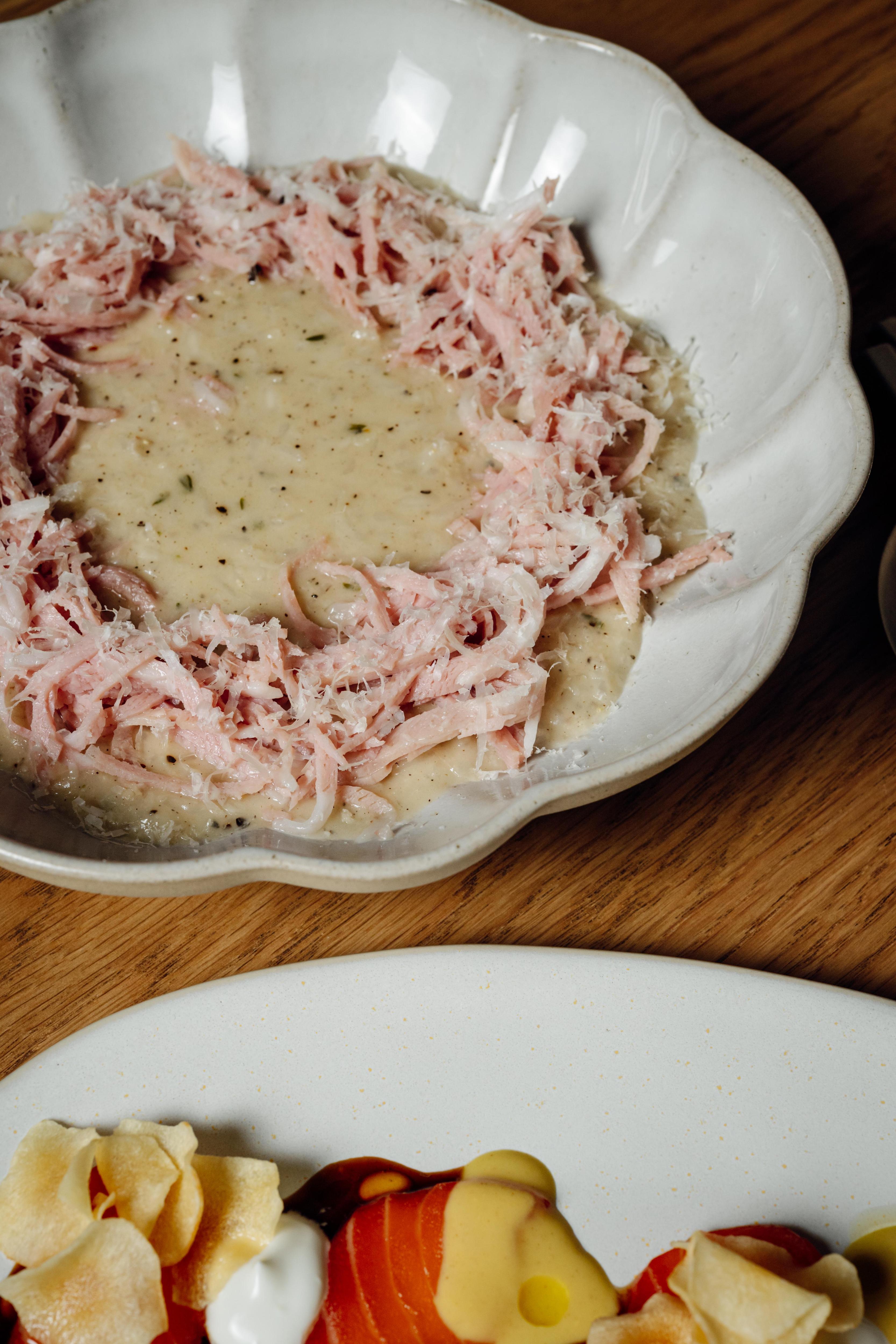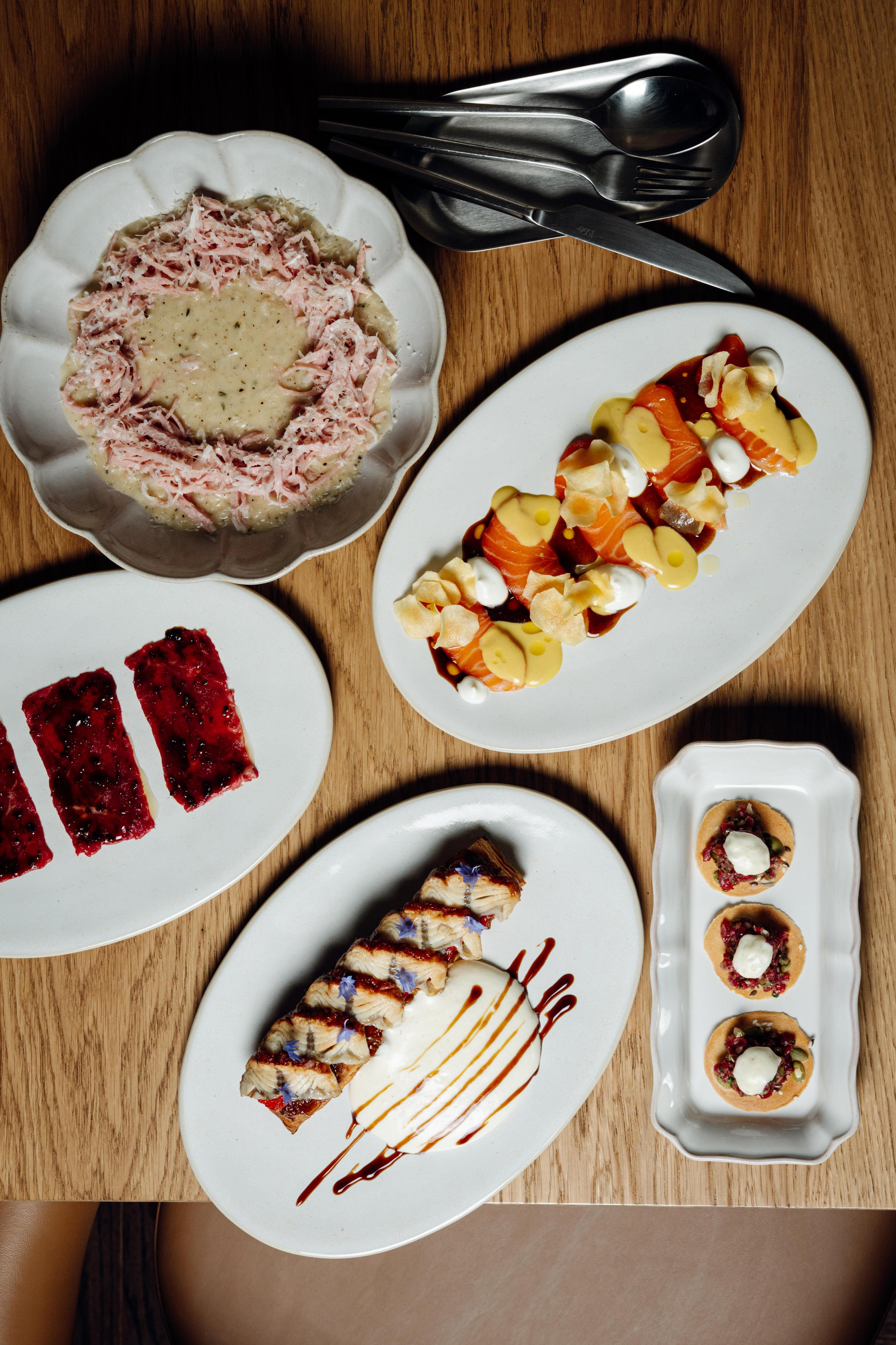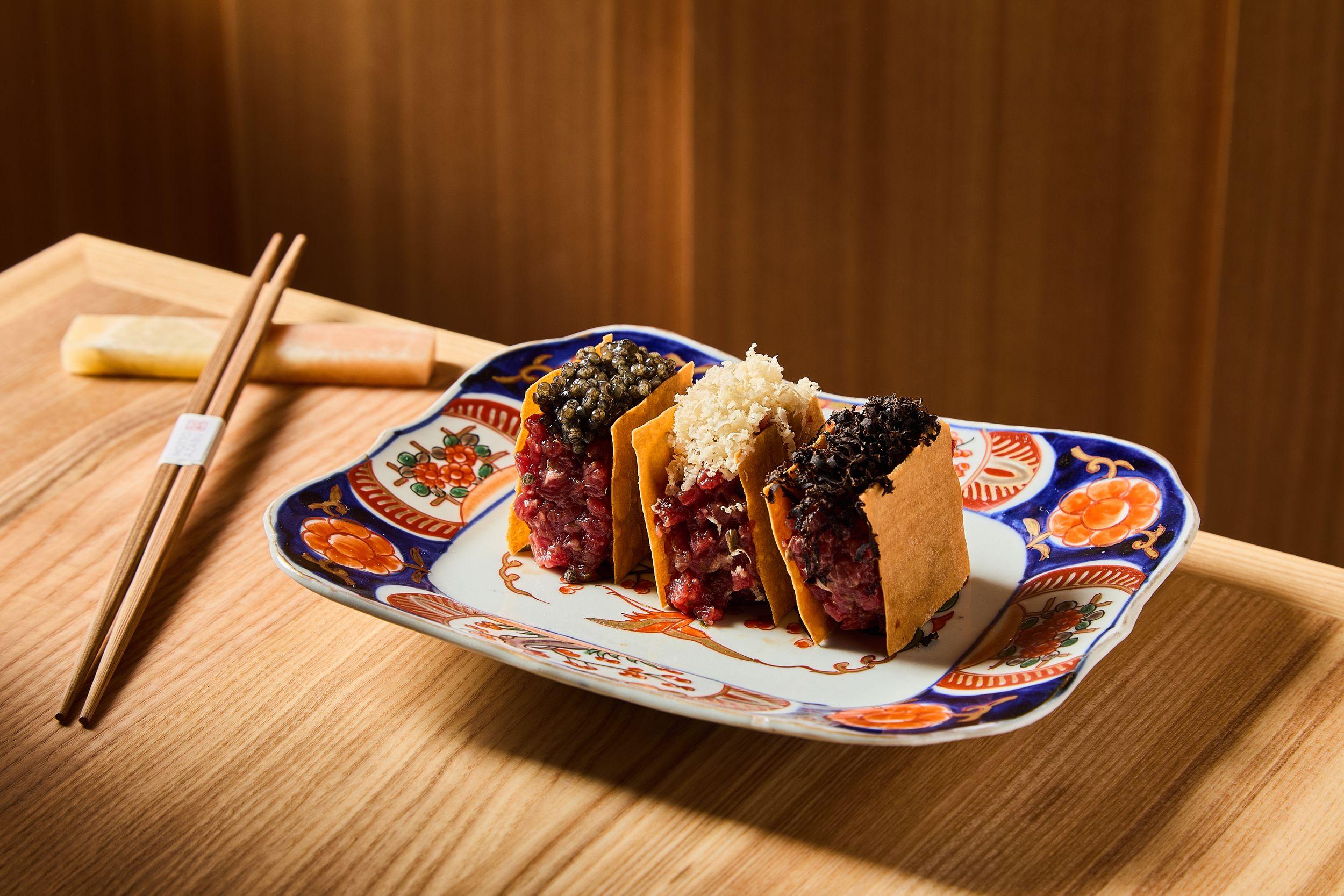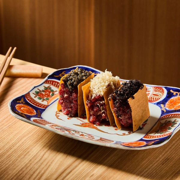 Меню, разработанное бренд-шефом Вадимом Мальковым в партнерстве с Чизуко Сирахама, воплощает диалог традиционной васеку и западной есеку. Здесь соседствуют охиташи с крабом в аутентичных бенто-боксах и токийский тартар из говядины соломкой с соусом умами, японский картофельный салат с раковыми шейками и «стейк Шаляпина» в коджи. Отдельного внимания заслуживает хамбагу из вагю с суфлеобразной текстурой, достигаемой долгим вымешиванием фарша на холоде, и паста ментайко как образец японо-итальянского синтеза.