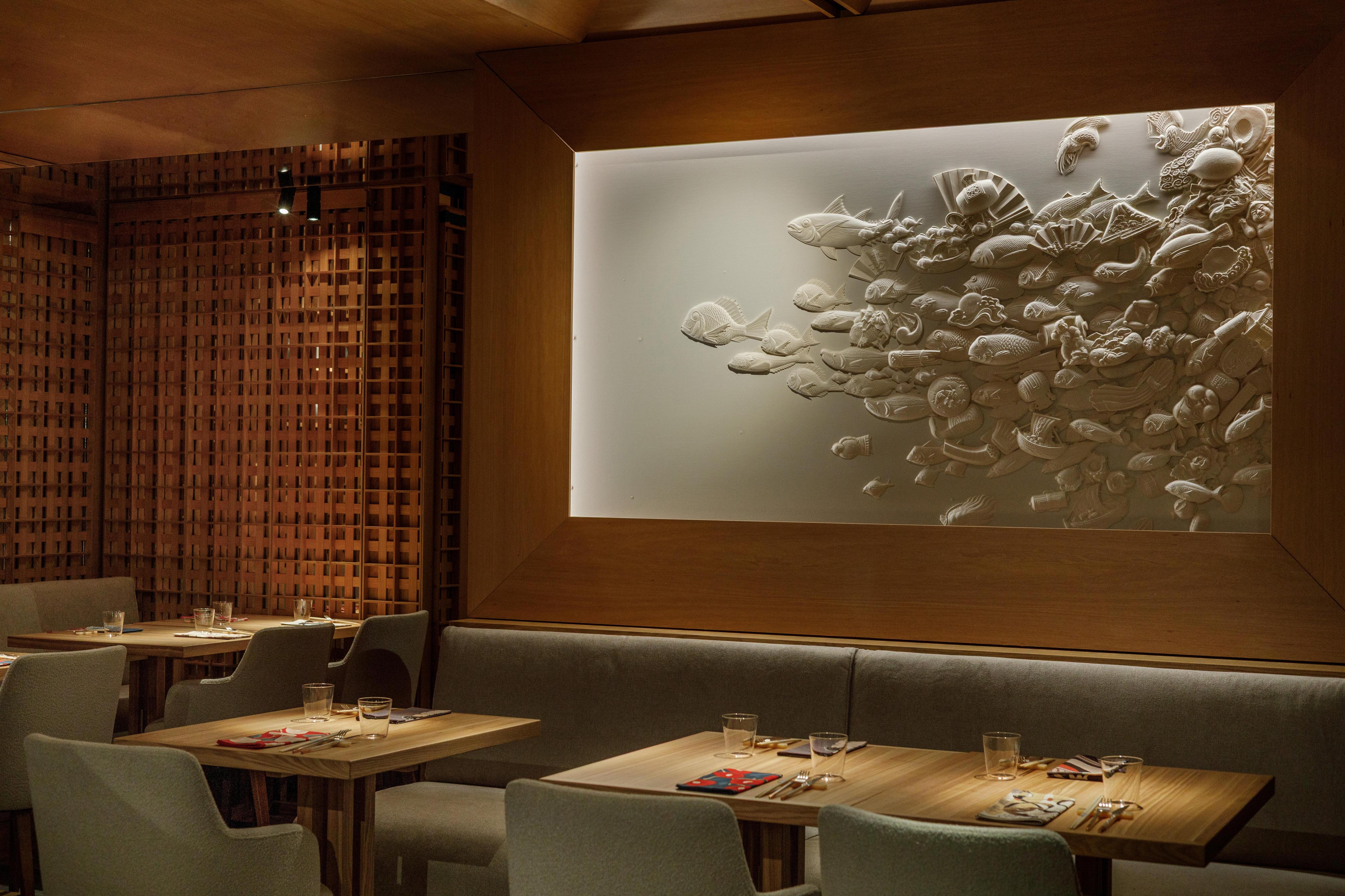 Культурный код проекта усилило посещение потомственного повара Нонаги Кимио, главы токийского ресторана Nihonbashi Yukari, обслуживающего Императорский двор. Его философия «онко-тисин» — уважение к традициям и поиск нового — стала ключевой для Motto Azabu. Атмосферу дополняют японский джаз, произведения Рюичи Сакамото и две угольные графические работы художника Сергея Кузнецова, вдохновленные замком Мацумото.