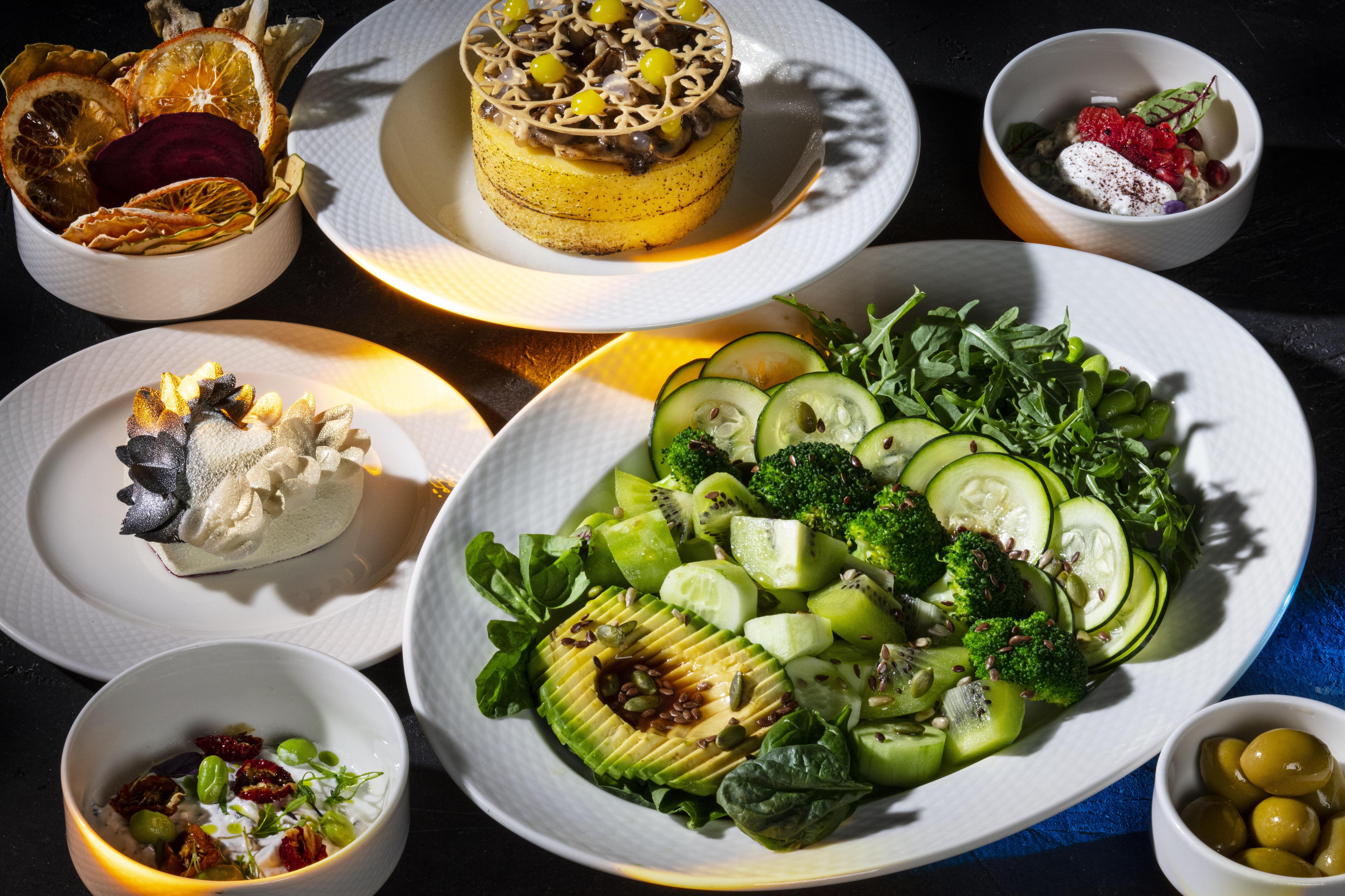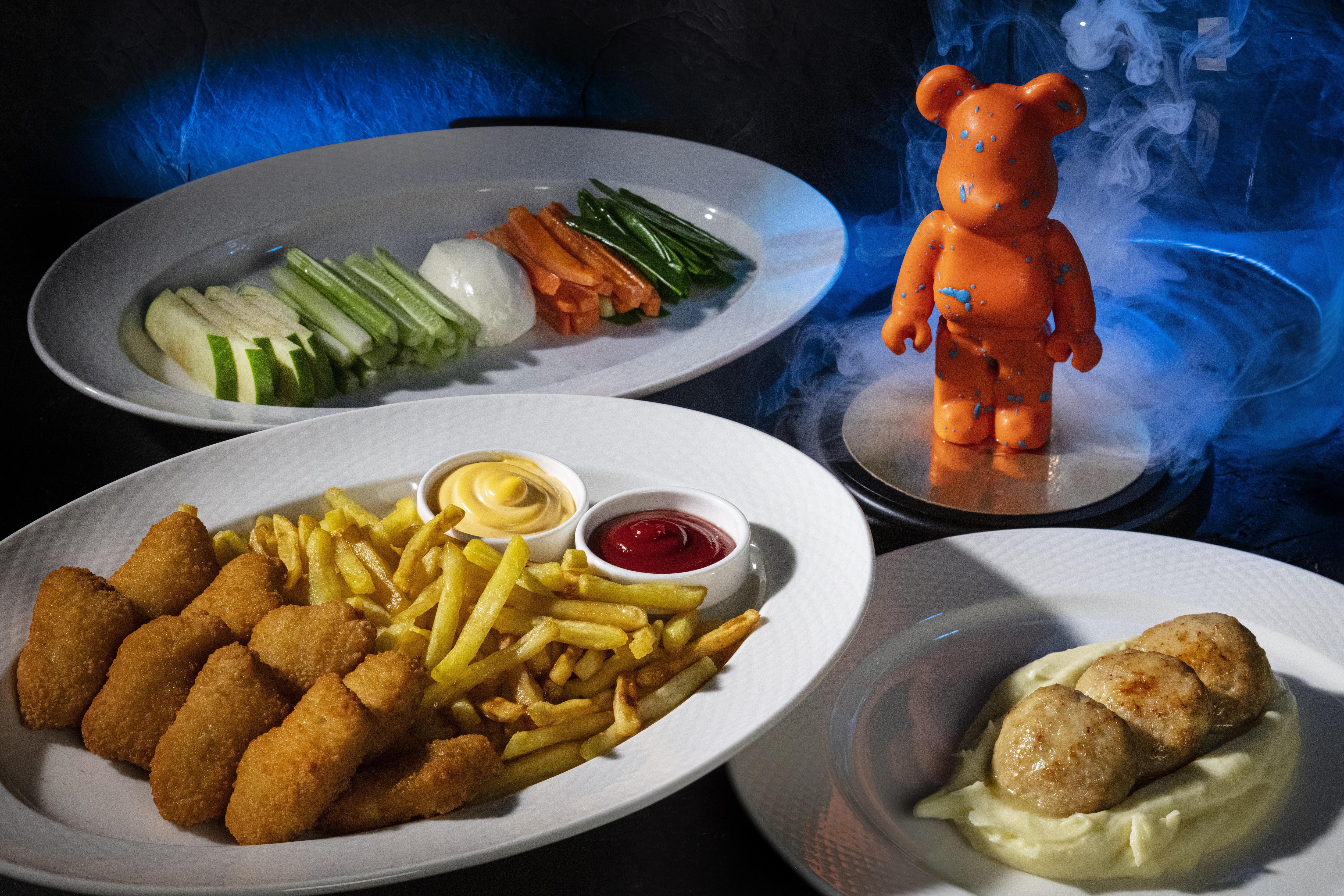 Для гостей, предпочитающих растительную кухню, подготовлен сет с хрустящими овощными чипсами, полентой с грибами и салатом с трюфельным маслом. Десерт в виде ягодного сердца продолжает визуальную метафору любви — ключевую тему спектакля. Юных зрителей ждет фирменный десерт Bearbrick: мишка из заварного крема с корицей, миндальным бисквитом и ягодным конфитюром.