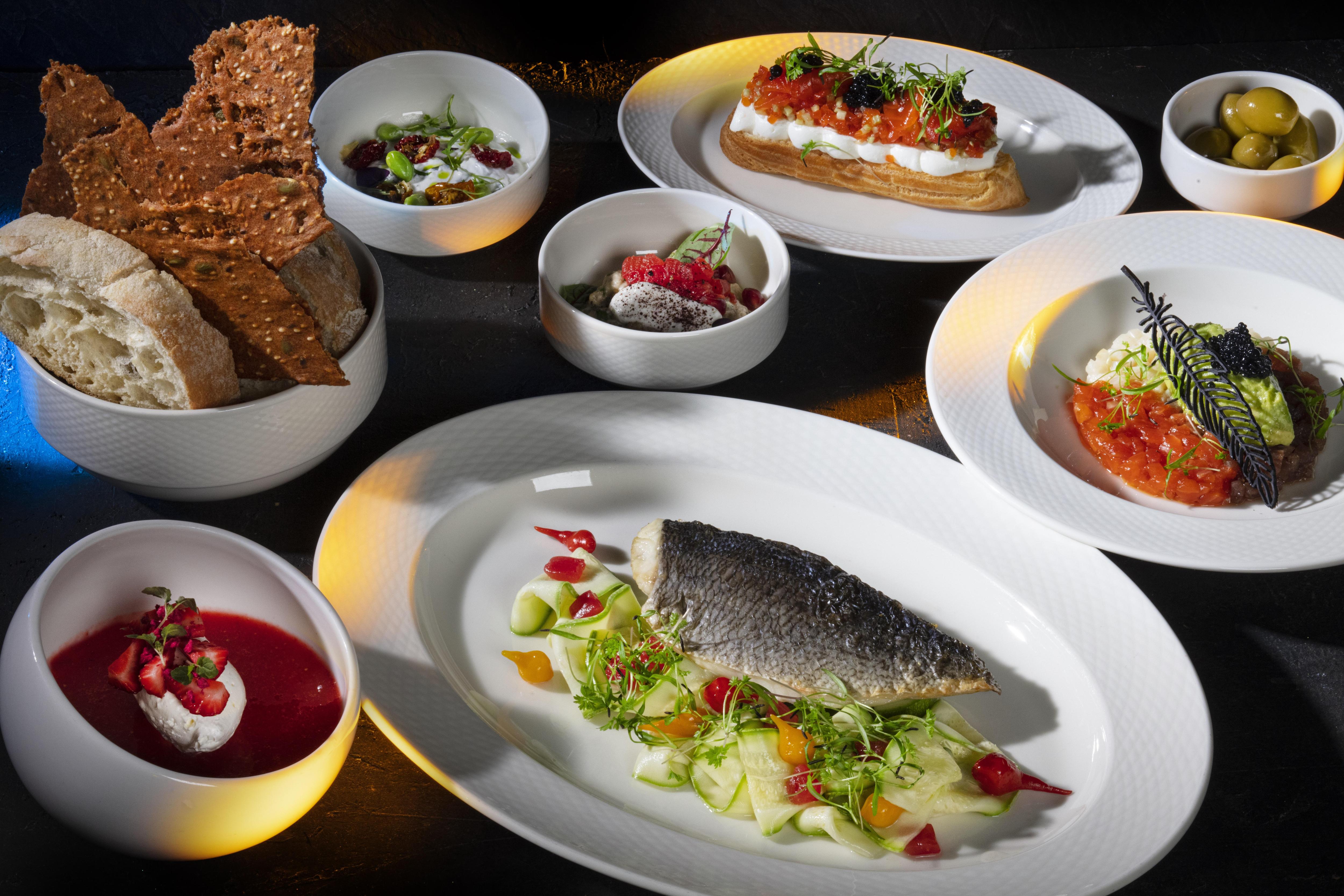 За кулинарную часть отвечает ресторанный проект Pinskiy & Co, разработавший четыре тематических сета. Мясное меню включает томленую грудинку в соусе порто с бататом, буррату с трюфелем и апельсиновым конфитюром, а также авторские закуски — ближневосточный бабагануш и эклер с утиным паштетом. Финальным аккордом служит черемуховый тарт с малиновым соусом и свежей клубникой. Рыбный сет предлагает трио тартаров из лосося, тунца и гребешка, запеченную дорадо с цукини и необычный десерт — клубничное гаспачо.