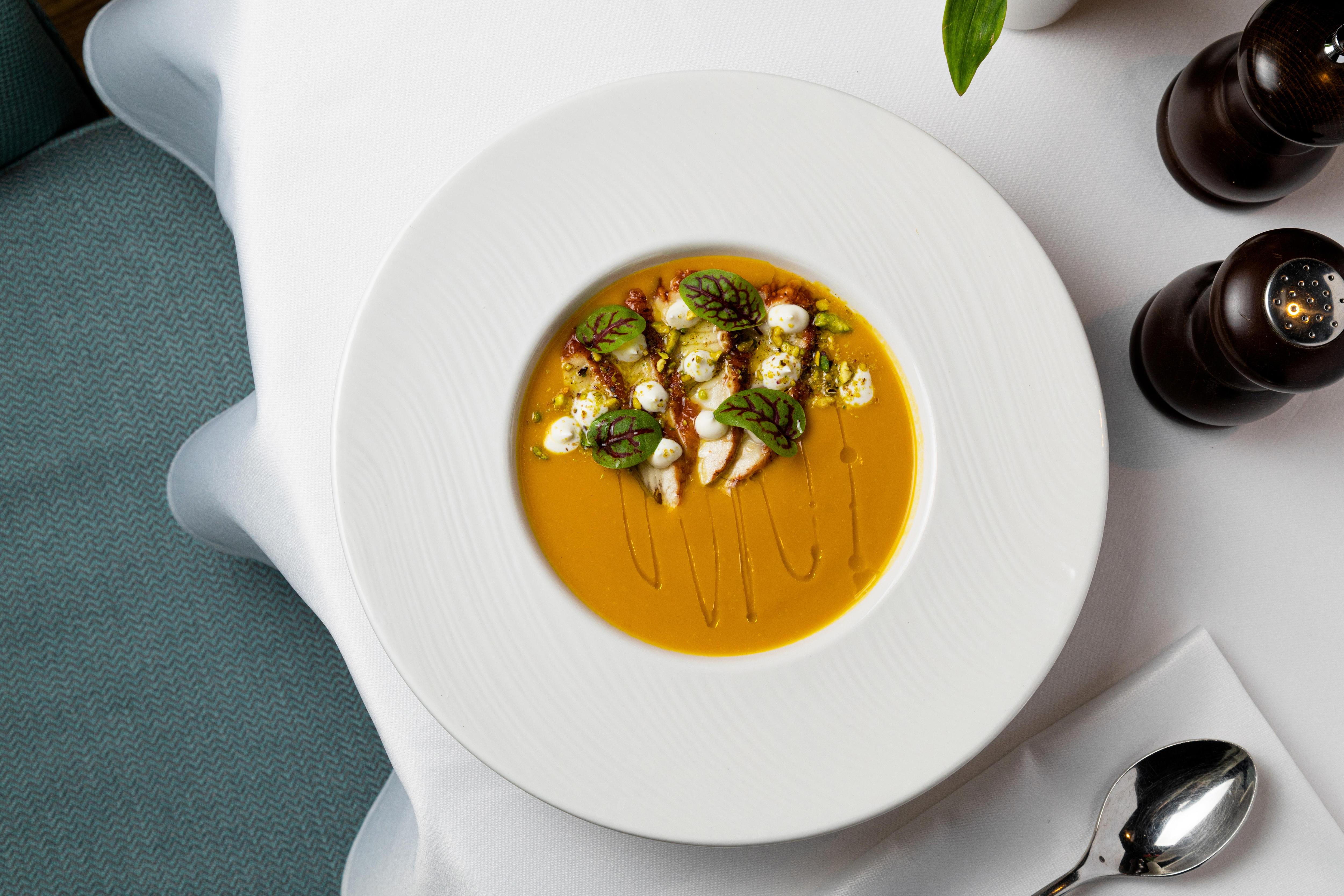 Тыква становится главной героиней нового меню, представ в четырех гастрономических вариациях. Гости могут попробовать крем-суп со страчателлой и креветками, ризотто со щупальцами кальмара, или выбрать зеленый салат с запеченной тыквой и уткой конфи. Отдельного внимания заслуживает авторская версия теплого ролла с лососем — японское блюдо получило неожиданное прочтение благодаря сочетанию с икрой палтуса и копченой грушей.