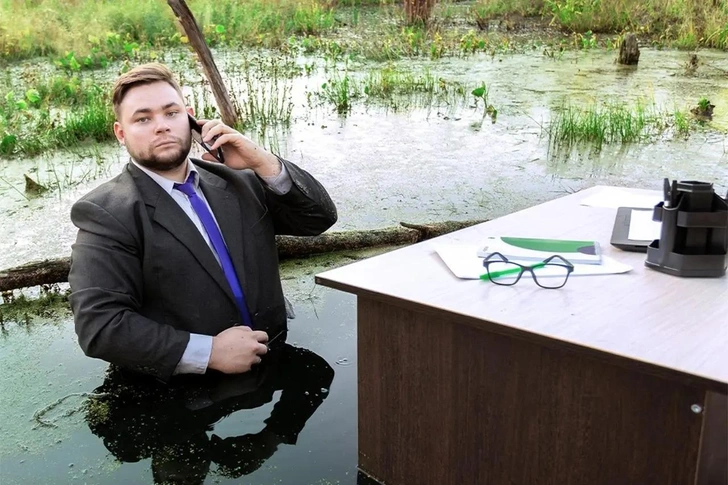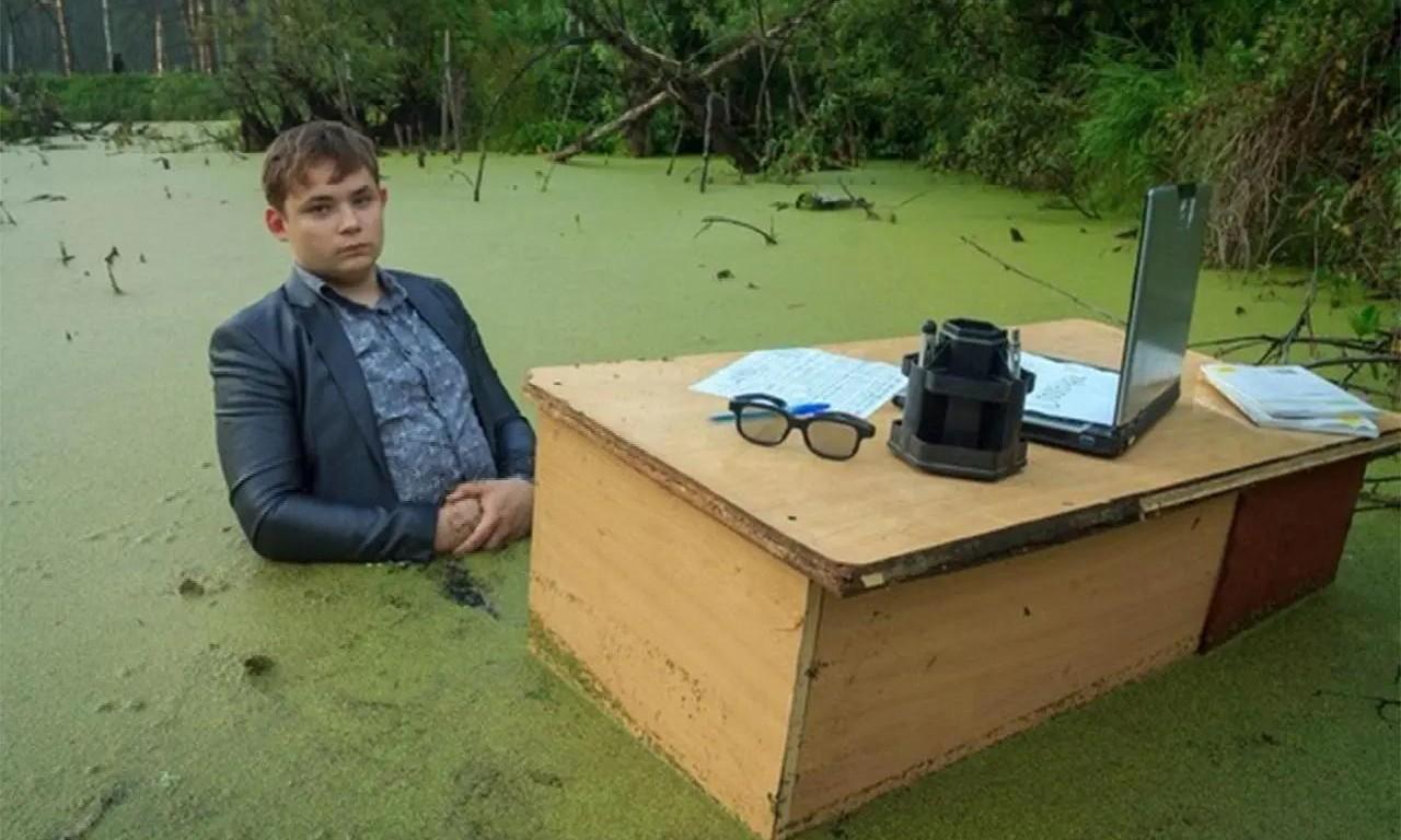 Еще в далеком 2016 году в сети стало вируситься необычное фото. На снимке школьник в деловом костюме сидел за офисным столом посреди болота. Его каменное лицо стало символом своеобразной абсурдной рутины. Мем «Школьник в болоте» разошелся по всем пабликам. Люди стали делать разные вариации шуток с участием этого персонажа.