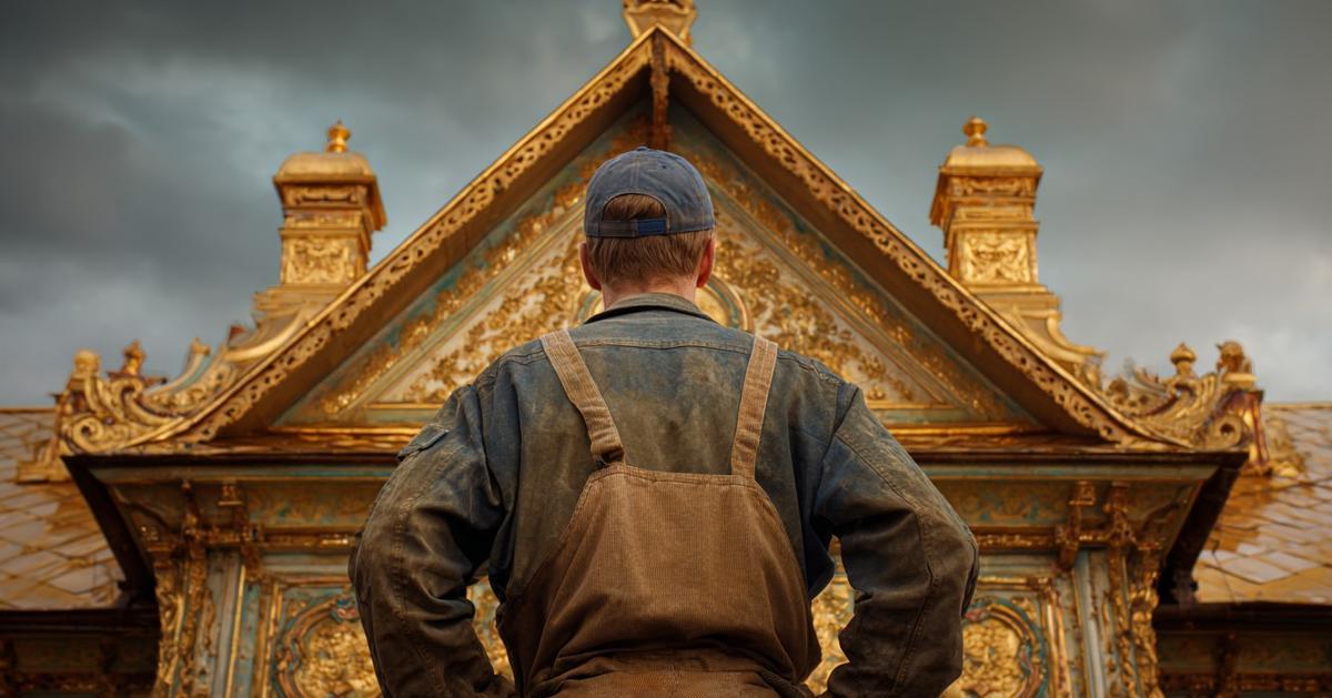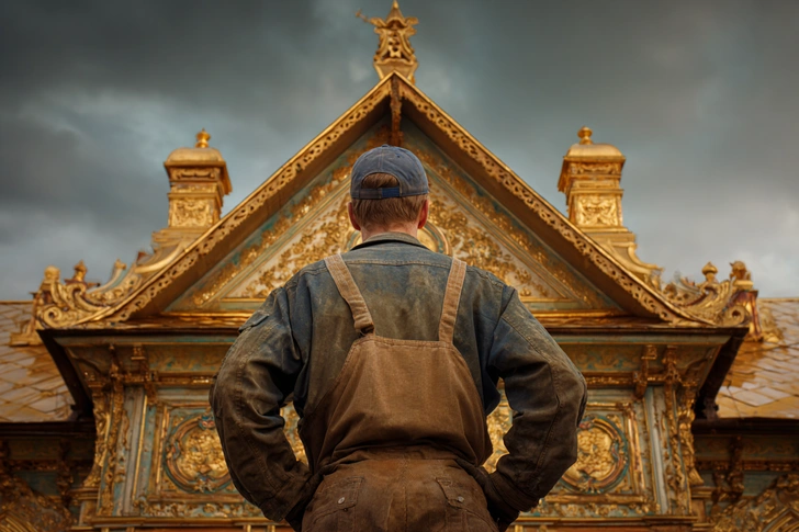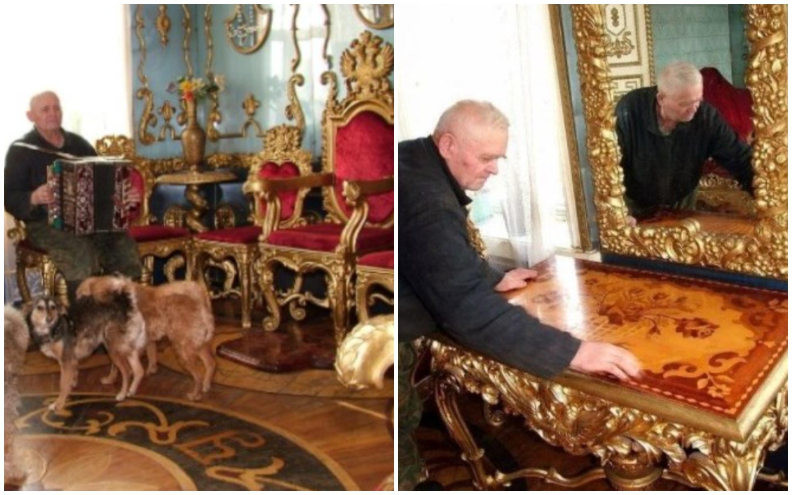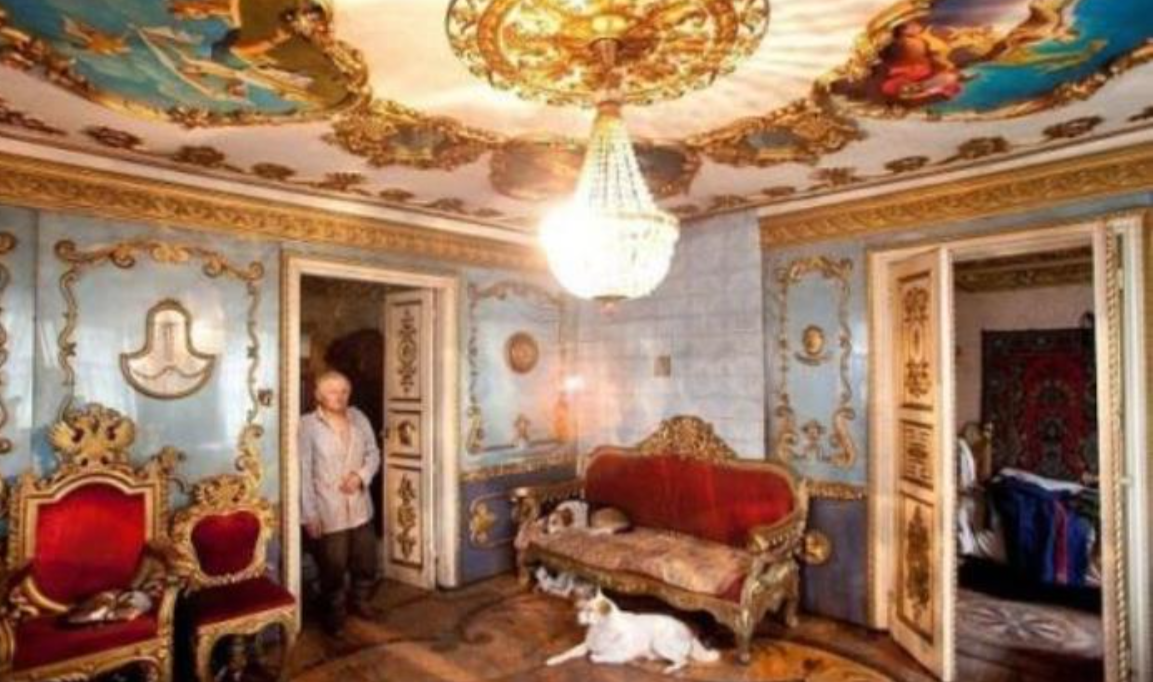 В Брянской области, в поселке Климово, стоит невзрачный деревянный дом. С улицы он выглядит бедно: краска давно облупилась, а наличники покосились от времени. Но если попасть внутрь, картина меняется до неузнаваемости. Там вас встретят лепные потолки, тяжелые золоченые рамы и самый настоящий трон.