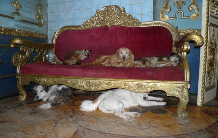 Соседи постоянно жаловались на лай и шум. Дело доходило до скандалов. Супруга устала от грязи, гама и постоянных разборок с соседями. В итоге она собрала вещи и ушла. Теперь в царских покоях вместе с хозяином живут десятки собак. Акулов не скрывает: они спят на том самом резном троне, и его это нисколько не смущает.