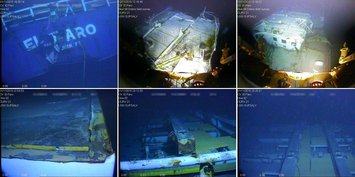 Подводные снимки грузового судна El Faro, затонувшего в Бермудском треугольнике во время урагана, унесшего с собой всех ученых, которые хотели исследовать ураган