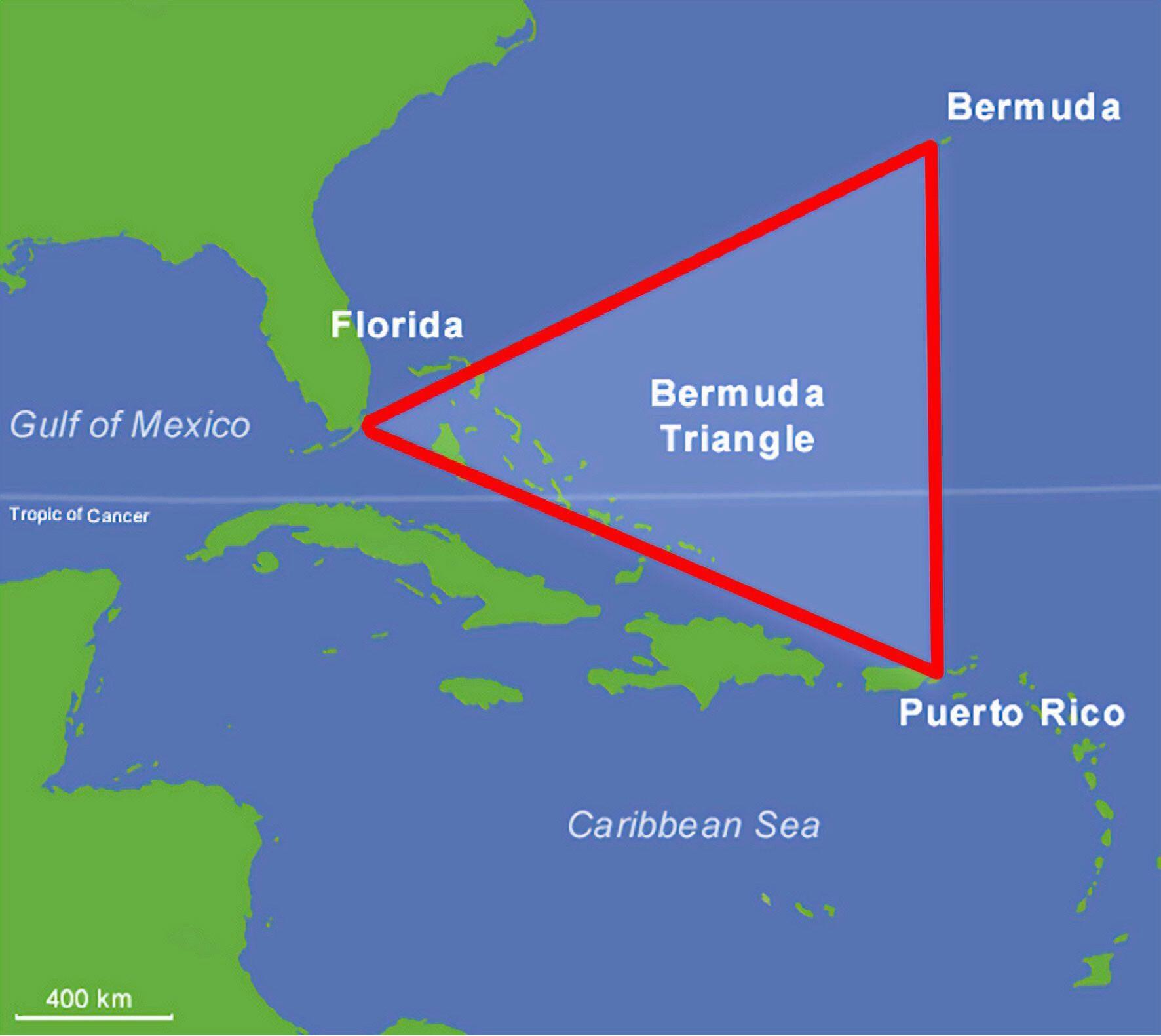 Географически это район Атлантического океана, чьи вершины действительно образуют треугольник. Площадь огромна — около 140 тысяч квадратных миль. Часть этой акватории принадлежит Багамским островам. Именно здесь, на оживленных путях, и начали однажды бесследно исчезать суда. Где находится Бермудский треугольник? Мы решили все показать наглядно.