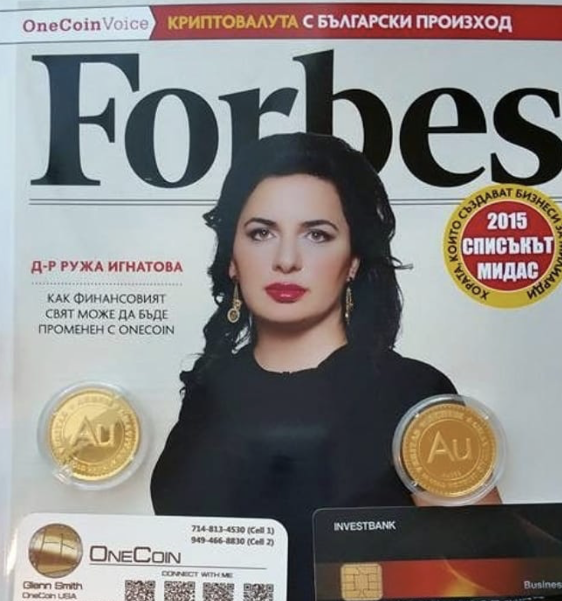 В 2014 году Ружа Игнатова вместе с партнером Себастьяном Гринвудом создала OneCoin — якобы криптовалюту, которая должна была стать конкурентом биткоина. Игнатова позиционировала себя как визионера, называла OneCoin «убийцей биткоина» и обещала инвесторам невероятную прибыль. Проект активно продвигался через сетевой маркетинг: люди покупали образовательные пакеты, которые давали право «добывать» монеты OneCoin.