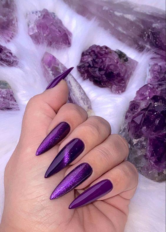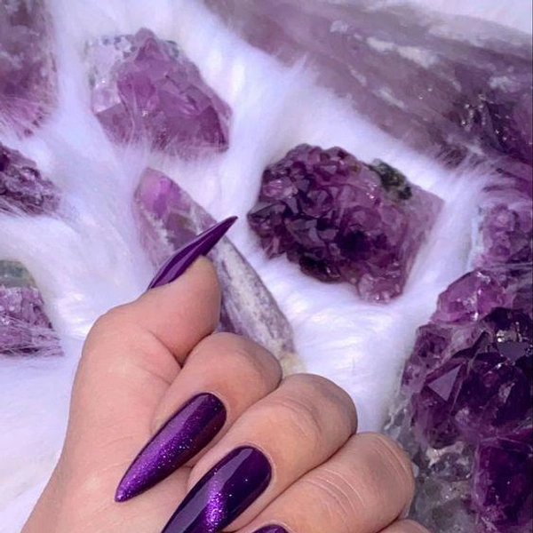 Для Тельцов денежный маникюр 2026 должен выглядеть статусно. Фиолетовый цвет отвечает за роскошь и крупные суммы, а желтый — за интеллектуальную прибыль и выгодные идеи. Пастельные оттенки в январе лучше отложить: они не активируют денежную энергию.
