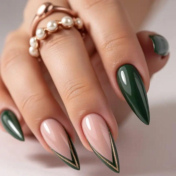 Минимализм остается вашей сильной стороной, но в январе добавьте зеленый оттенок. Такой денежный маникюр на январь 2026 помогает выстроить стабильный доход и рационально управлять ресурсами. Лаконичный дизайн усилит эффект.