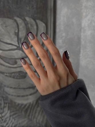 Среди дизайнов лидирует френч во всех вариациях: классический белый, цветной, обратный или боковой. Квадратная форма подчеркивает графичность линии улыбки. Также актуальны металлические втирки, «бархатное» покрытие с матовым финишем и минималистичные акценты — тонкие полоски, точки и геометрические фигуры.
