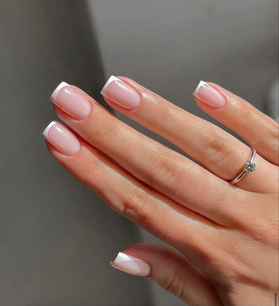 Если у вас короткие пальцы, можно компенсировать это чуть большей длиной свободного края или выбрать «мягкий квадрат», который не режет линию визуально.