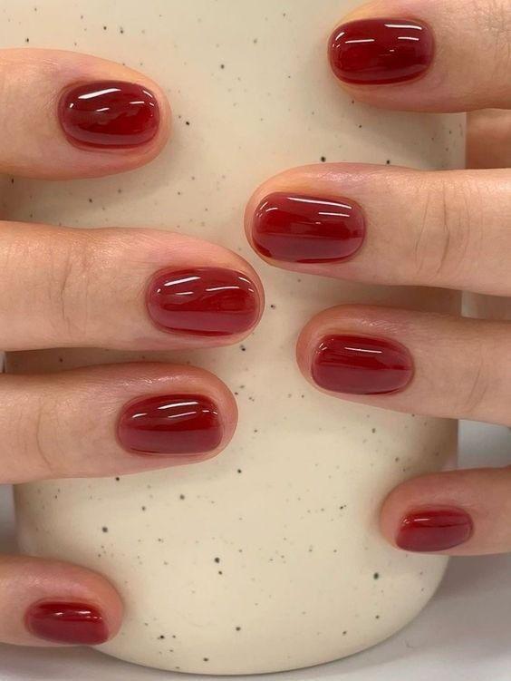 Короткий маникюр весны в желейной технике тоже прекрасно работает: короткие округлые ногти с полупрозрачным покрытием выглядят современно.