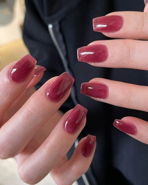 Желейный маникюр — полупрозрачное покрытие с эффектом стекла или мармелада. Ноготь просвечивает сквозь лак, создавая иллюзию идеально ровной, почти светящейся поверхности. Никаких плотных слоев, никаких тяжелых пигментов — только легкая цветная вуаль поверх натурального ногтя.