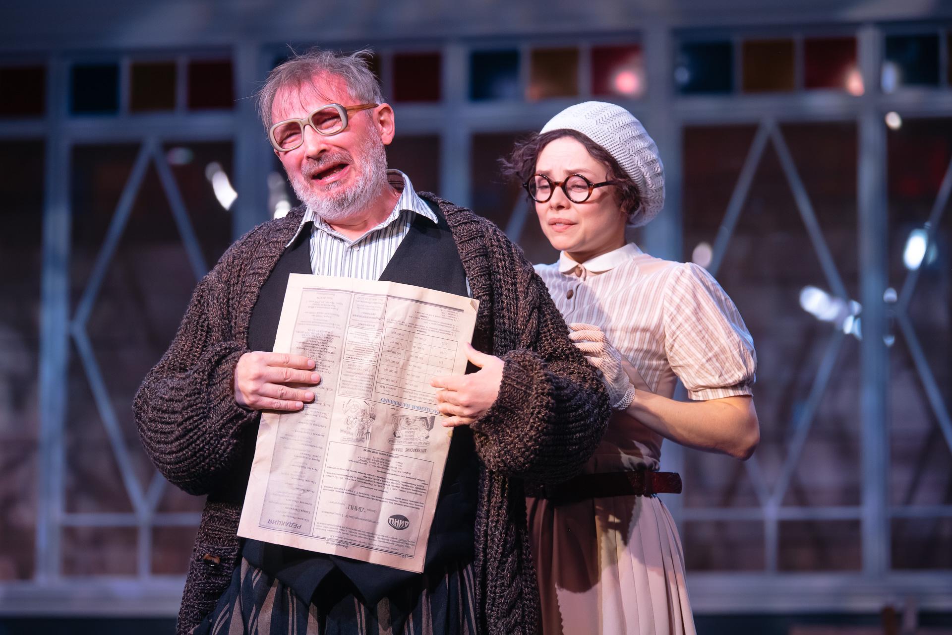 Игорь Верник, Полина Кутепова и Виталий Коваленко в ироничном спектакле Петра Шерешевского.