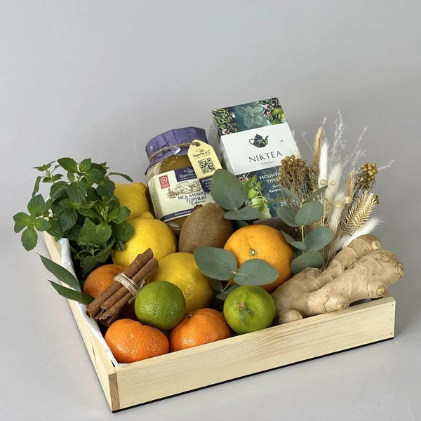 Когда за окном холод и слякоть, а сезонные простуды становятся привычным делом, важно поддерживать иммунитет. Заботливым напоминанием об этом может стать полезный набор с медом, свежим имбирем, цитрусовыми и пачкой ароматного травяного чая. Если хочется добавить завершающий штрих, дополните подарок красивой кружкой ручной работы или деревянной ложкой для меда — получится искренний и очень теплый жест. А еще такой подарок сможет стать поводом для совместного чаепития.