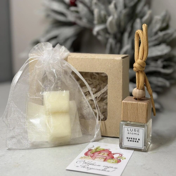 Творческий подарок — это отличный способ помочь человеку отвлечься от рабочей рутины и попробовать что-то новое. Например, тех, кто проводит много времени за рулем, можно порадовать набором для создания индивидуального автомобильного парфюма. Это необычный и одновременно практичный подарок, а еще — возможность увлекательно провести время вместе. Чтобы поддержать новогоднее настроение в таком поздравлении, выбирайте наборы с хвойными, цитрусовыми, древесными или пряными ароматами.