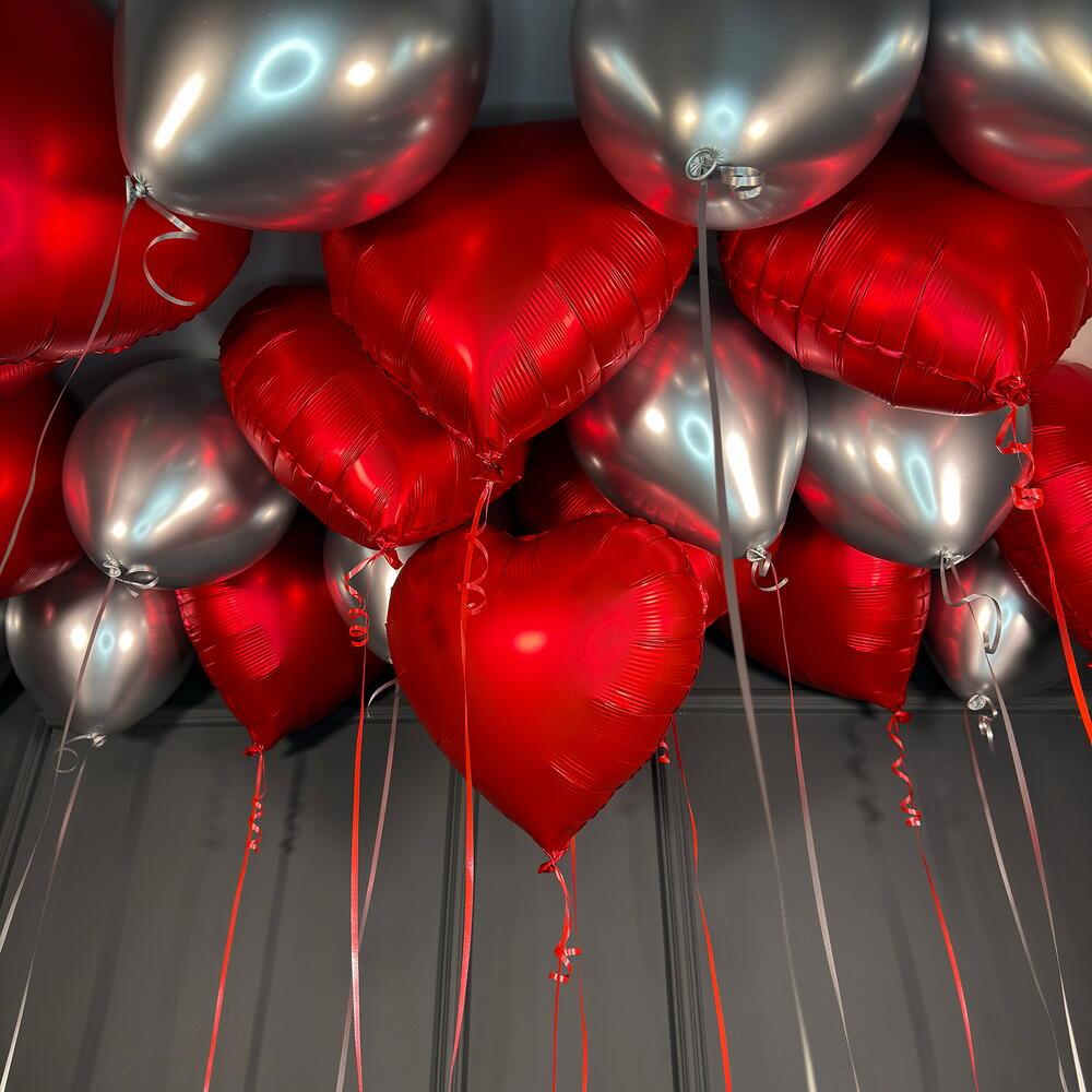 Чтобы удивить девушку, не всегда нужен огромный букет цветов. Не менее эффектно будет выглядеть охапка воздушных шаров под потолком, которые она увидит, когда проснется. Шары легко комбинировать между собой по форме и оттенкам. Например, можно выбрать ее любимый цвет и подвесить к лентам совместные фотографии, подписав каждую теплыми пожеланиями.