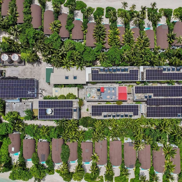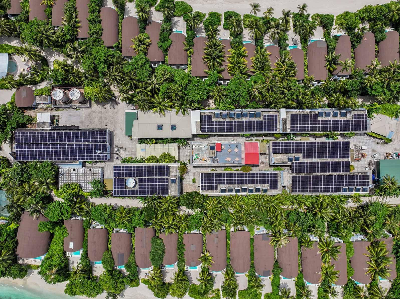 На острове установлено 650 солнечных панелей, которые вырабатывают до 6 часов чистой энергии в день. Это позволяет значительно сократить использование дизельного топлива и снизить углеродный след.