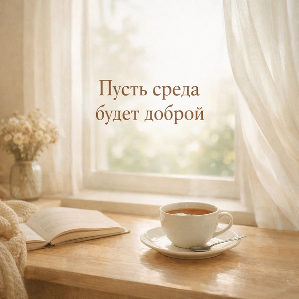В коллекциях встречаются разные варианты: классическая открытка среда с лаконичным дизайном и более уютные картинки с атмосферой утра. Особенно популярны открытки на утро среды в спокойных тонах — они помогают создать настроение для продуктивного дня.