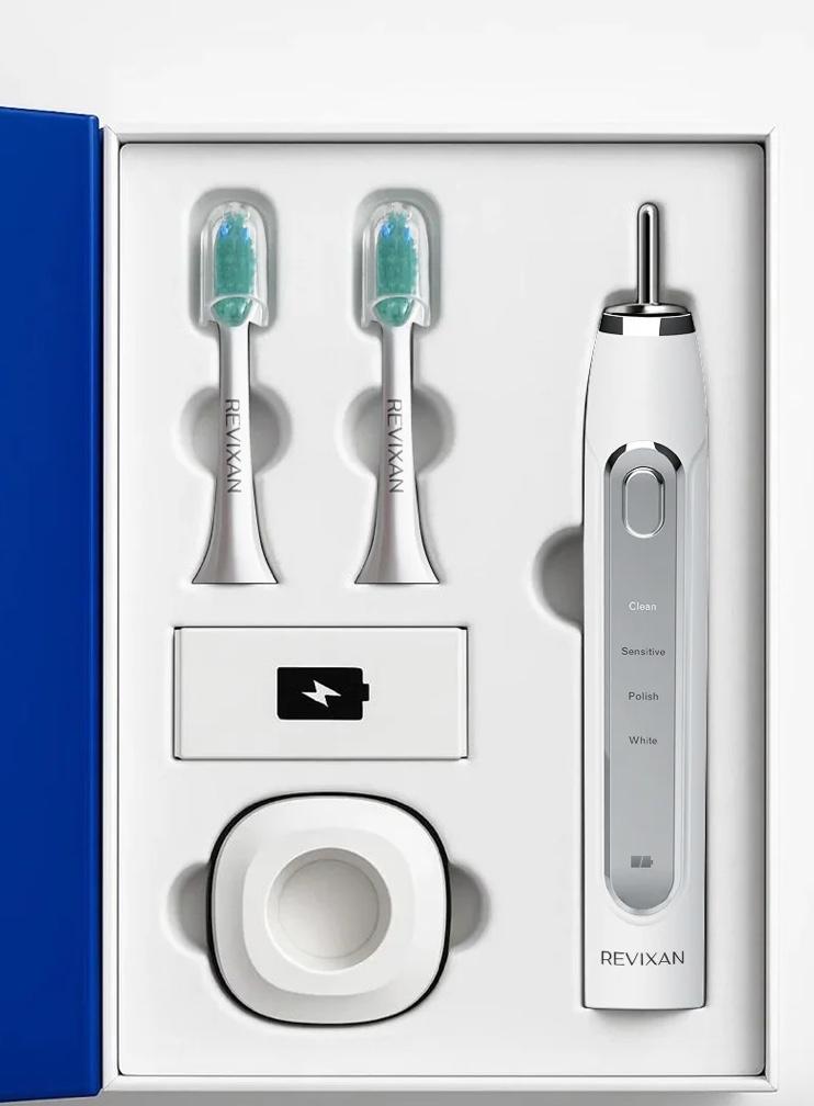 REVIXAN — российский бренд, развивающий направление фотодинамической терапии (ФДТ), при которой свет определенной длины волны активирует специальный состав и запускает естественные процессы восстановления тканей. REVIXAN LED Sonic Toothbrush — первая на рынке светодиодная звуковая щетка, сочетающая ежедневную чистку и ФДТ в одном устройстве. Она помогает в профилактике заболеваний десен, оснащена четырьмя режимами работы, встроенными светодиодами 660 нм и таймером с 30-секундными интервалами для правильной гигиены. Автономная работа до месяца и деликатная щетина средней жесткости делают ее удобным гаджетом для домашнего ухода.
