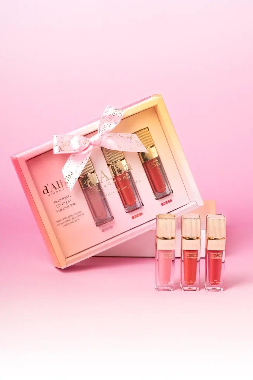 d'Alba представляет набор из трех блесков-пламперов Plumping Lip Glow Mood Volumizer в розовых оттенках с глянцевым финишем — идеальный подарок для неё. Веганская формула без минеральных масел с натуральными экстрактами создает эффект объемных губ с жидкой текстурой, которая комфортно носится в течение дня. Три оттенка в одном наборе позволяют варьировать образ от нежного до более выразительного.