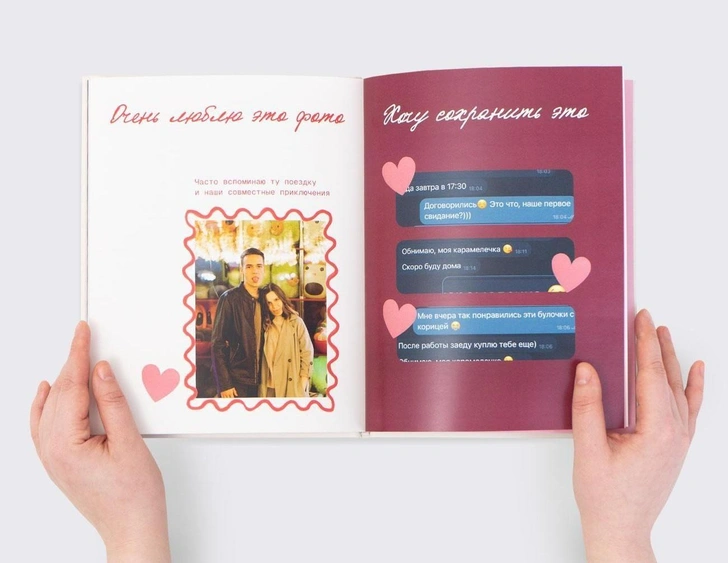 Книга содержит особые шаблоны, которые помогают оживить самые теплые детали: первое свидание, знаковые сообщения, «вашу» песню или место встречи. Даже если совместных снимков немного, историю можно рассказать словами. Такой подарок можно создать для себя или для партнера, а также преподнести родителям, превратив 14 февраля в повод сохранить семейную историю любви для будущих поколений.