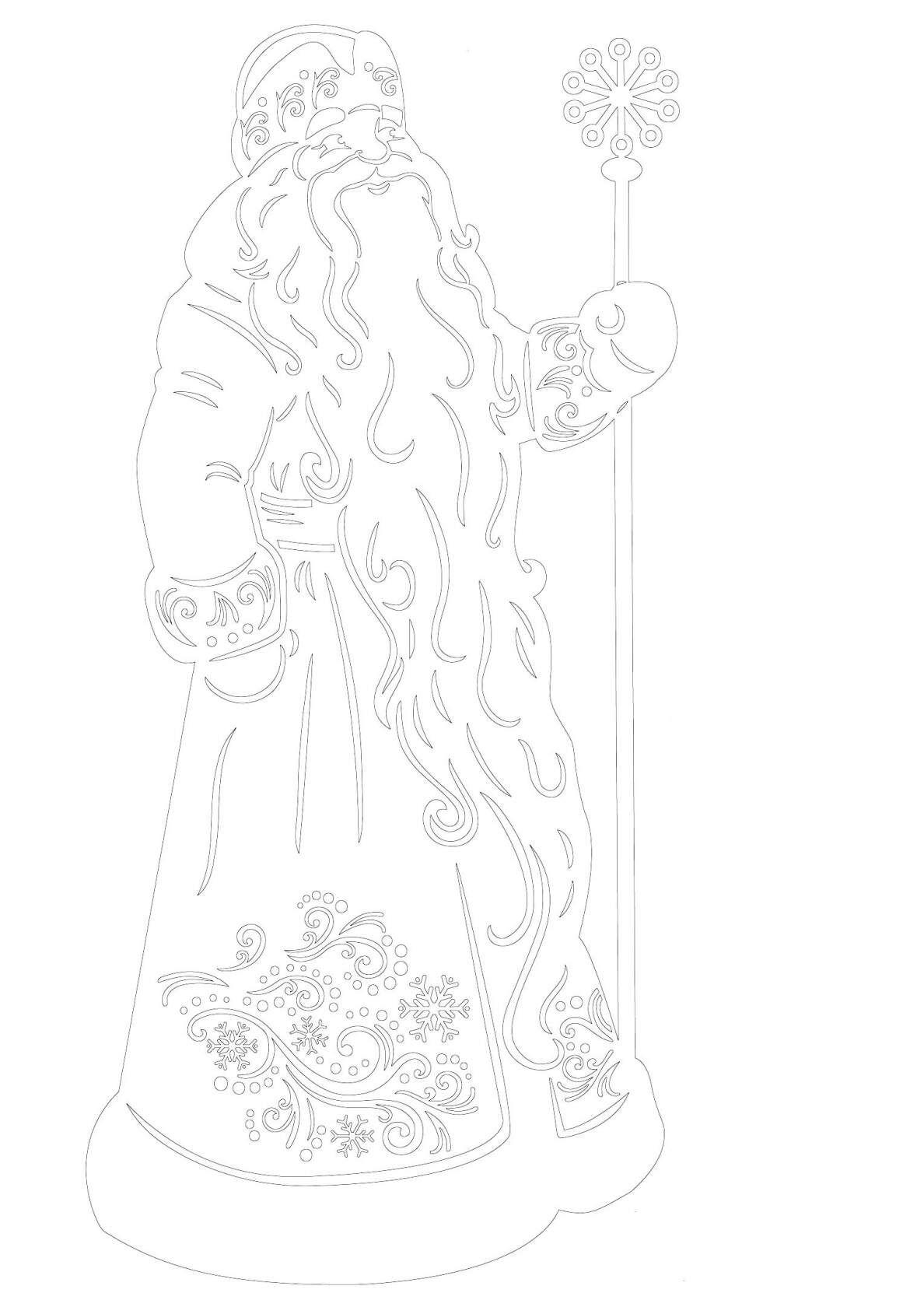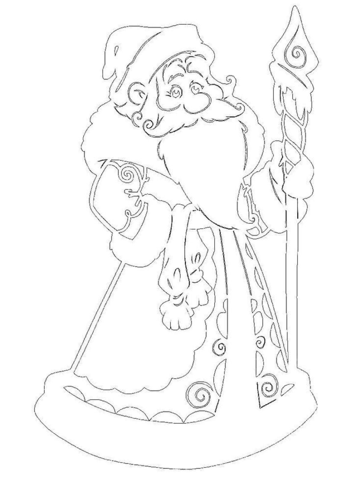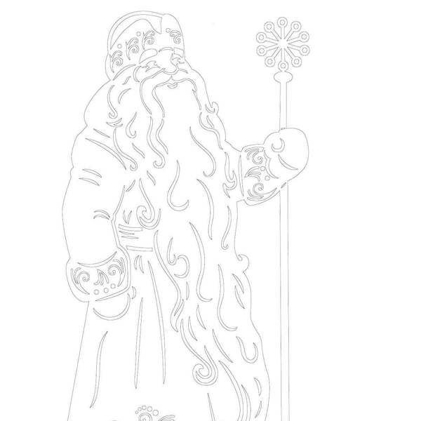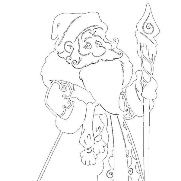 Во-вторых, его фигура идеальна для ажурного искусства. Пышная шуба с меховой опушкой, узорчатый посох, вьющаяся борода, мешок с подарками — эти детали просто созданы для прорезной техники. Из них можно создать и сложный узорчатый силуэт для опытных, и простой контур для детского творчества.