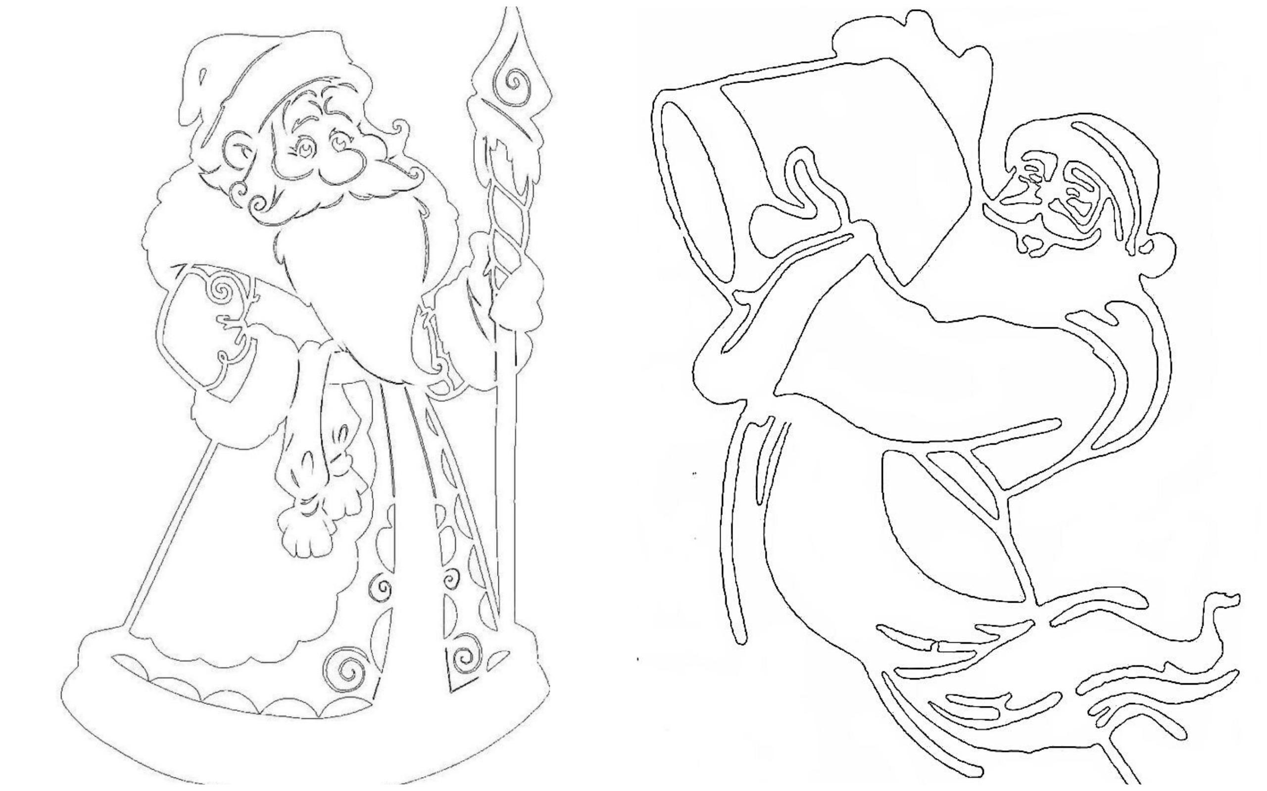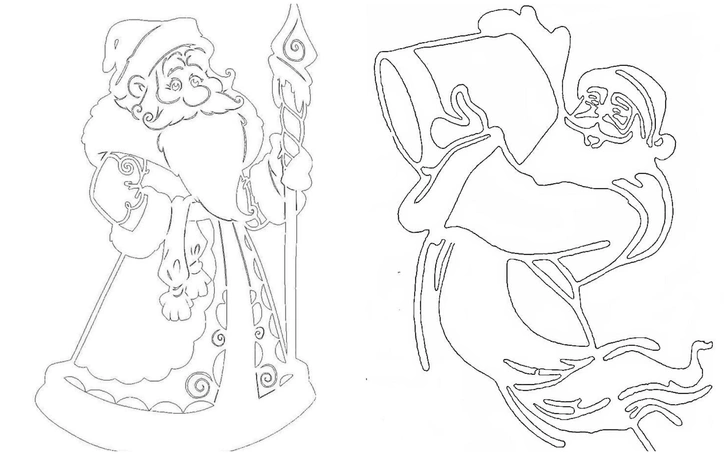 Если вы ищете в сети по запросам «вытынанки Дедов Морозов» и «вытынанки Дед Мороз» готовые шаблоны с главным новогодним волшебником, советуем не заморачиваться на долгий просмотр галерей и позаимствовать макеты из нашей подборки.
