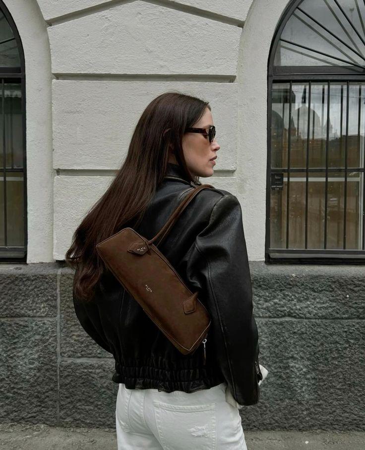Самое простое и работающее сочетание с прямыми джинсами. Жакет с плечами над узким низом создает четкость силуэта, ради которой все и затевалось. Рубашка или базовая майка внутри — больше ничего не нужно. Второй вариант — с легким платьем или юбкой из текучей ткани. Здесь жакет играет роль якоря: он структурирует образ, который без него превратился бы в бесформенность.
