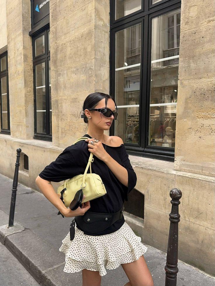 Широкое плечо теперь соседствует с текучей юбкой или легким платьем: контраст работает лучше, чем строгий ансамбль с иголочки. Пропорции стали осознаннее: если жакет крупный и объемный сверху, низ остается лаконичным — никакого двойного объема.