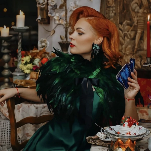 Самая яркая рыжая участница Битва экстрасенсов, конечно, Мэрилин Керро. Эстонская ведьма участвовала в шоу трижды и все три раза занимала второе место, но в памяти зрителей осталась как безусловная звезда проекта. Ее стиль — готический гламур в самом изысканном исполнении: зеленые платья с перьями, наряды с цепями, глубокие декольте и безупречный макияж с акцентом на глаза.