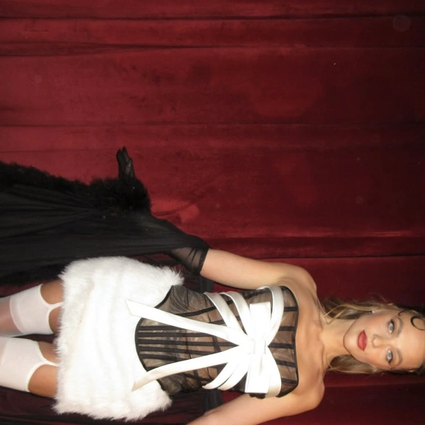 Так, на одном из фото Саша Белякова позирует в зеркале в образе ангела: кремовый корсет на шнуровке с геометрическими вставками, маленькие белые крылья за спиной и золотой чокер с шипами смотрятся эффектно. Образ балансирует между невинностью и провокацией — что, собственно, и можно назвать в некоторым смысле фирменным стилем блогера.