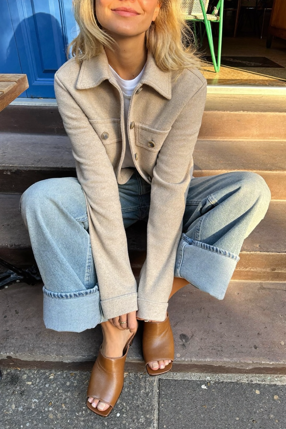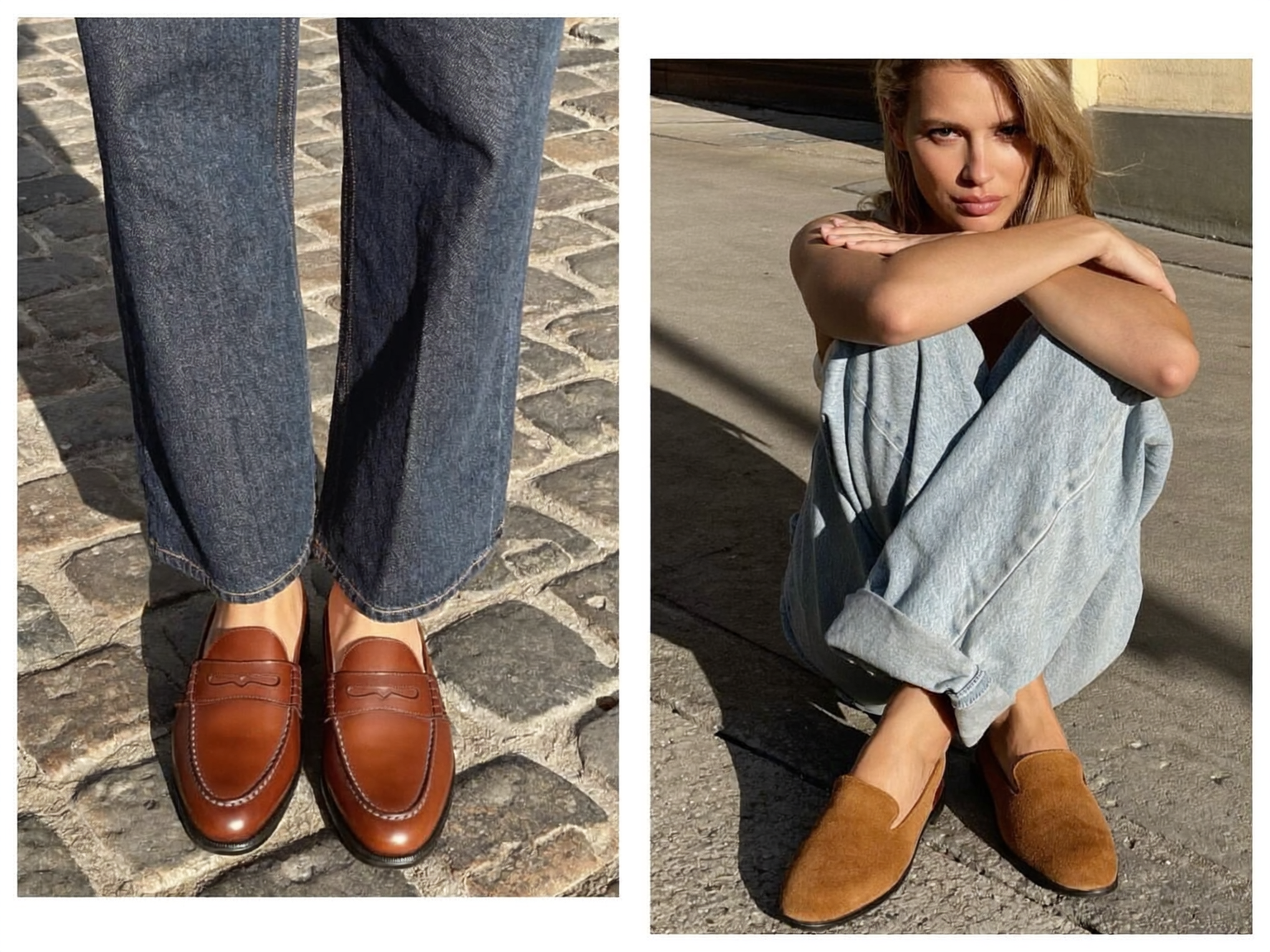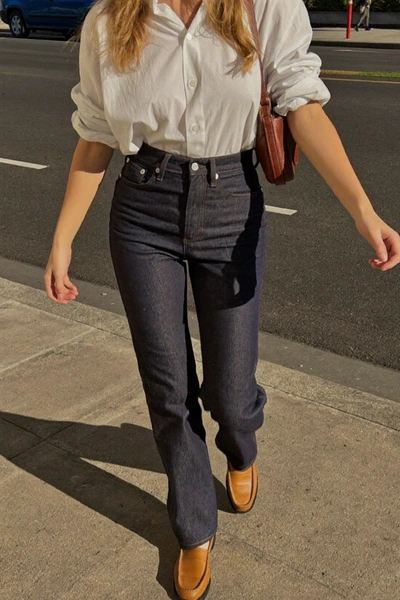 Когда речь заходит об обуви к джинсам, большинство из нас действует по накатанной: белые кроссовки, черные лоферы, в крайнем случае что-то коричневое и темное. Это работает, спорить не станем. Но «работает» и «поднимает образ на другой уровень» — разные вещи. Один цвет туфель способен превратить простые джинсы и базовый верх в образ, который хочется сфотографировать. И этот цвет — коньячный.