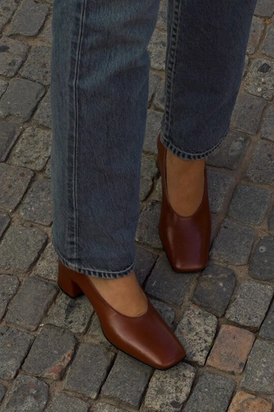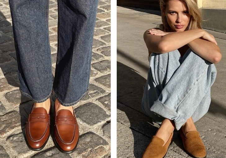 Коньячный оттенок хорошо выглядит в конкретных силуэтах. Лоферы — главный выбор сезона: они несут в себе ту долю элегантности, которая делает коньячный уместным. Мюли на невысоком каблуке подойдут для тех, кто хочет чуть больше женственности без потери комфорта.
