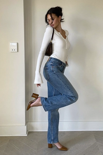 Синяя джинса — один из самых универсальных цветов в гардеробе, но именно холодный подтон делает его особенным. Черный рядом с ним уводит образ в строгость, белый — в легкость и спорт, а темный коричневый — в приземленность и практичность.