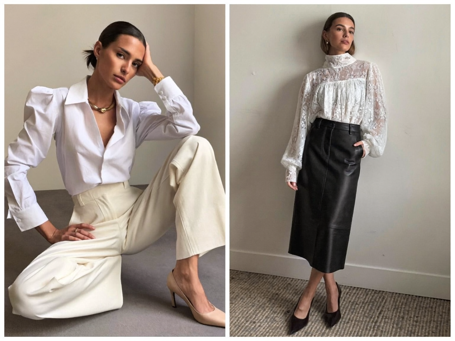 В сезоне 2026 не нужно выбирать между функциональным и красивым или между деловым и романтичным. Пять моделей — база с характером, кружевная водолазка, аристократичный шелк, воздушная органза и практичная манишка — закрывают любую потребность.