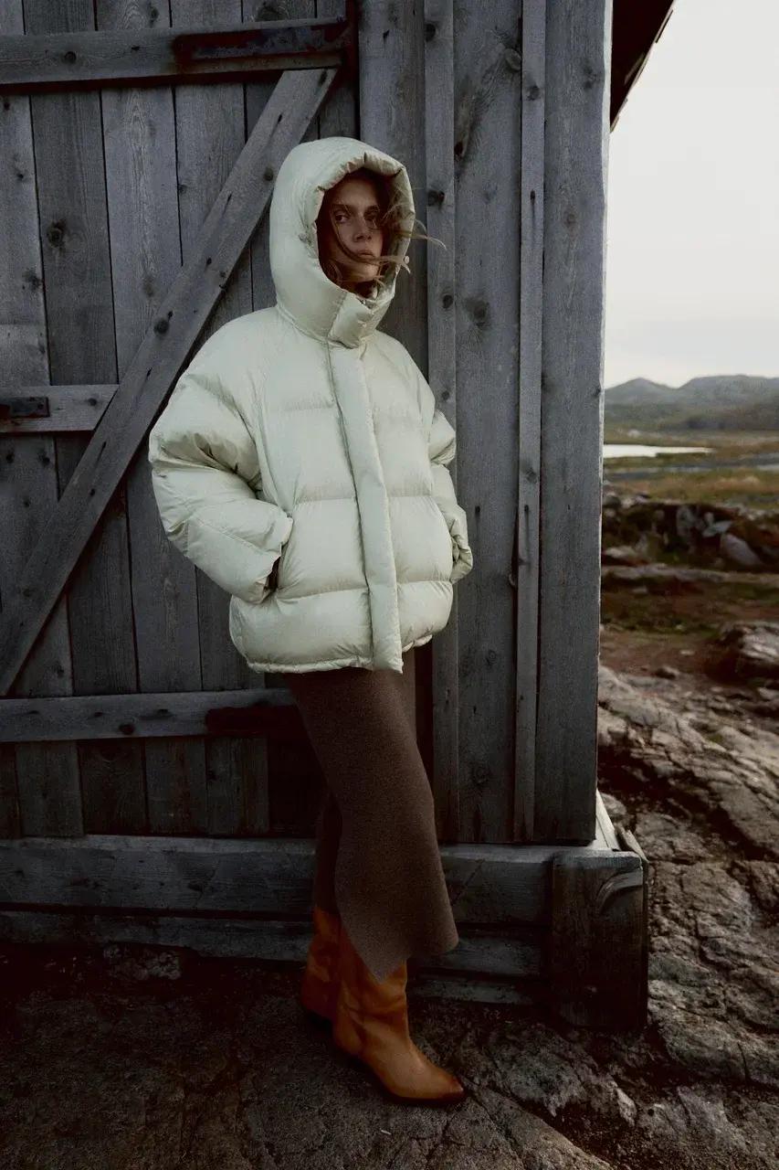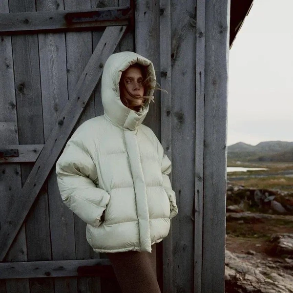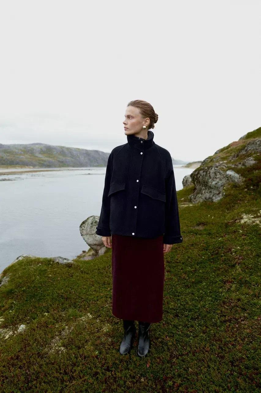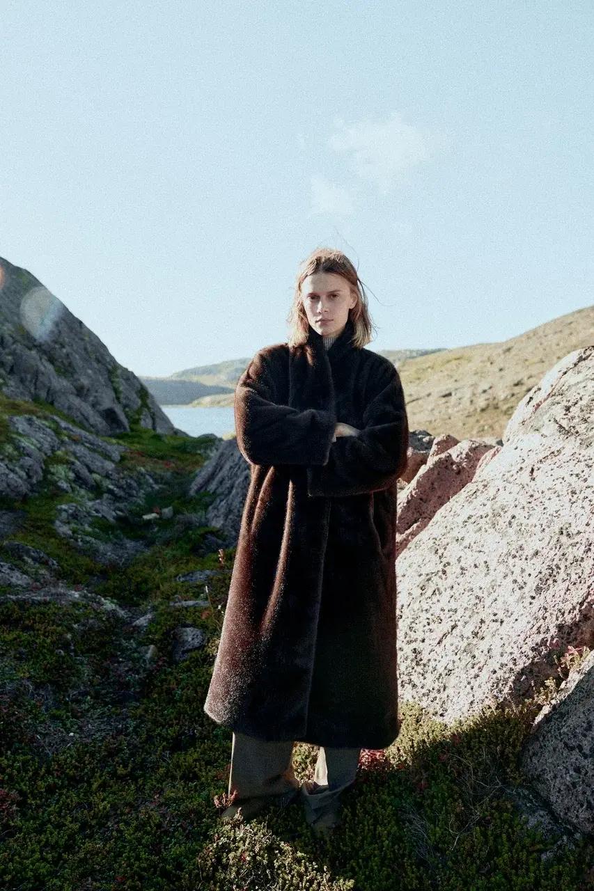 Каждая вещь — как личная карта местности: шерстяные пальто с округлыми бортами, платья из костюмки, плотный трикотаж и жакеты с точной посадкой создают архитектуру уюта. В капсуле нашлось место и искусственным шубам с «дыханием» прибоя, и бомберам, сочетающим эстетику пальто с комфортом верхней одежды. А палитра — от ледяного серого до пыльного мокко — напоминает о сумерках над северным морем.