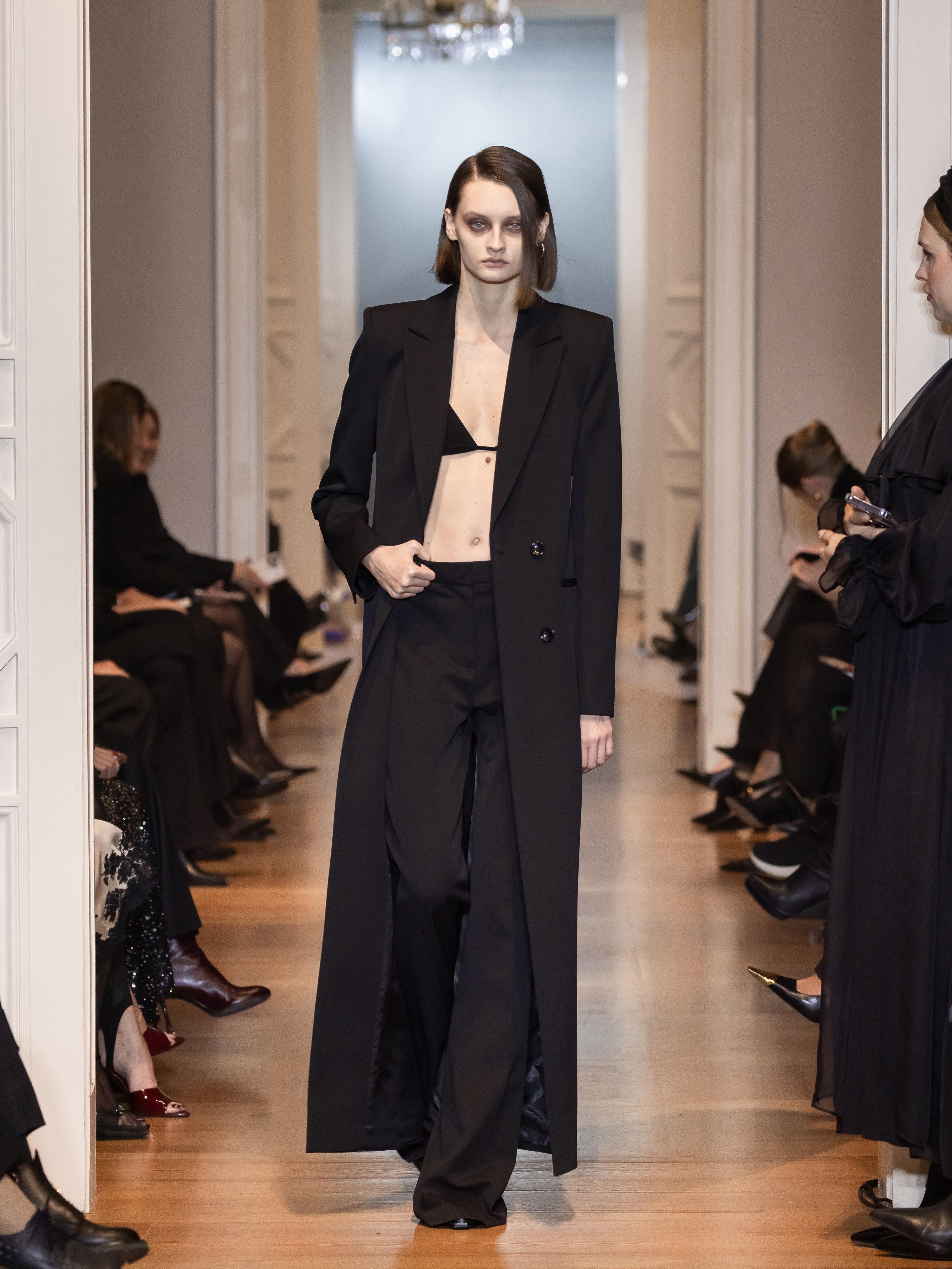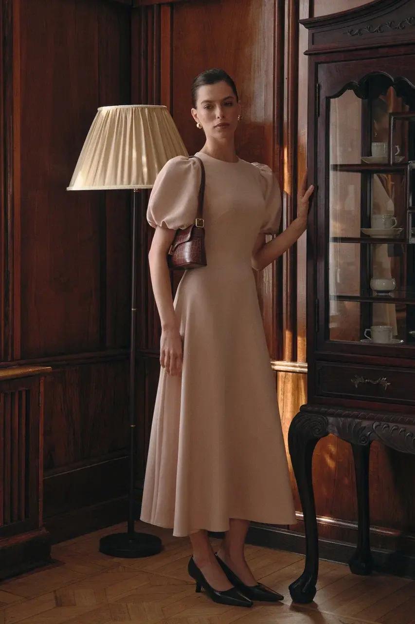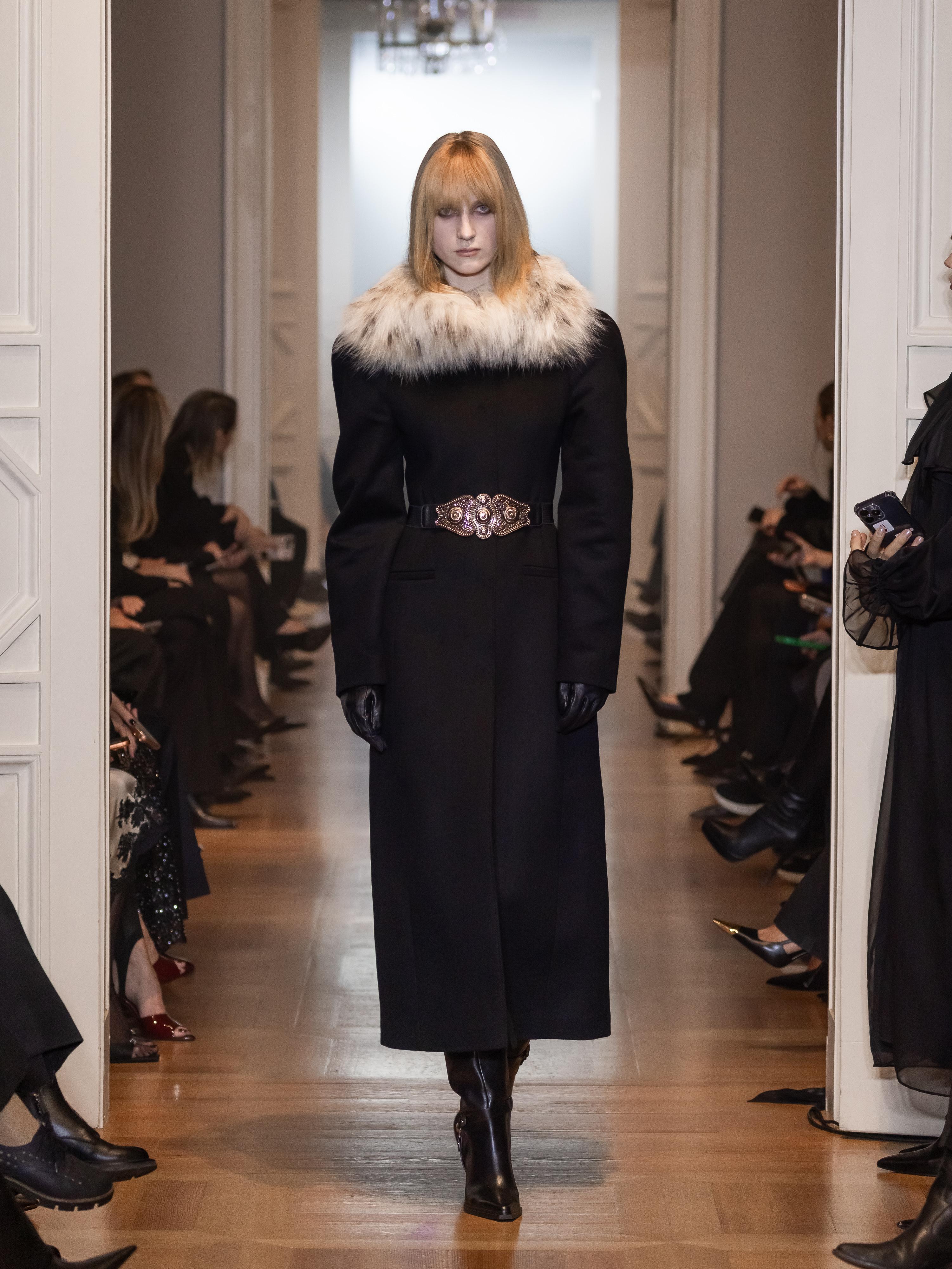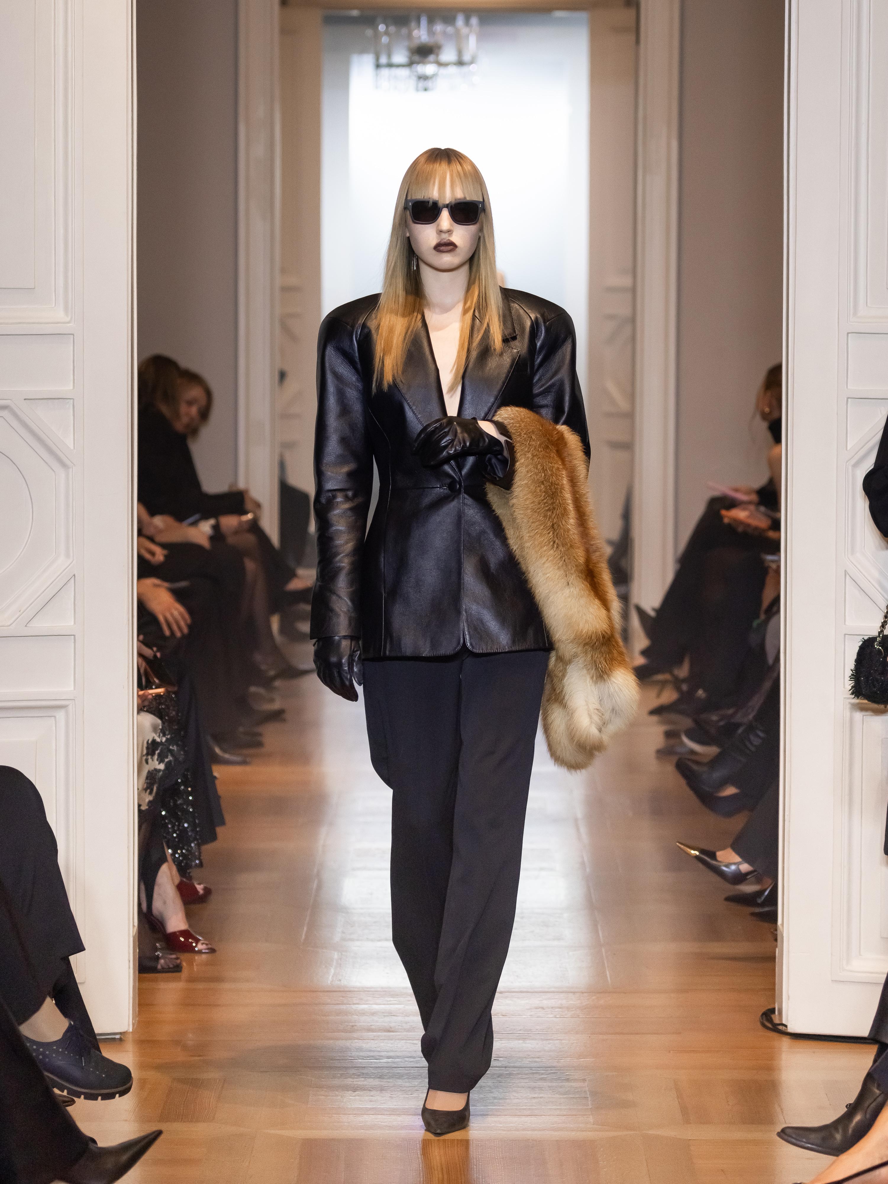 Помимо костюмов, в центре внимания — платья с выверенными лекалами и силуэтами вне времени. Приталенные миди с мягкими линиями и благородными тканями (шерсть, кашемир, шелк) раскрывают идею современной романтичности. Дизайнер Юлия Прохорова дополняет образы меховыми шарфами, добавляя легкий аристократизм. Каждое изделие несет в себе знаковый для бренда баланс формы и содержания.