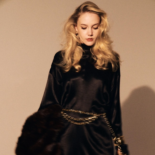Коллекция становится высказыванием о современной роскоши. В центре — вечерние платья из бархата, кружева и струящихся тканей с воланами, вдохновленные архивами ведущих домов моды. Бархат, как ключевой материал сезона, задает глубину цвета и драматизм, кружево и многослойность добавляют образам движения и легкости. Дополняют капсулу верхняя одежда и аксессуары — меховые шарфы, бомберы и жилетки, позволяющие вписать вечерние образы в динамику зимнего города.
