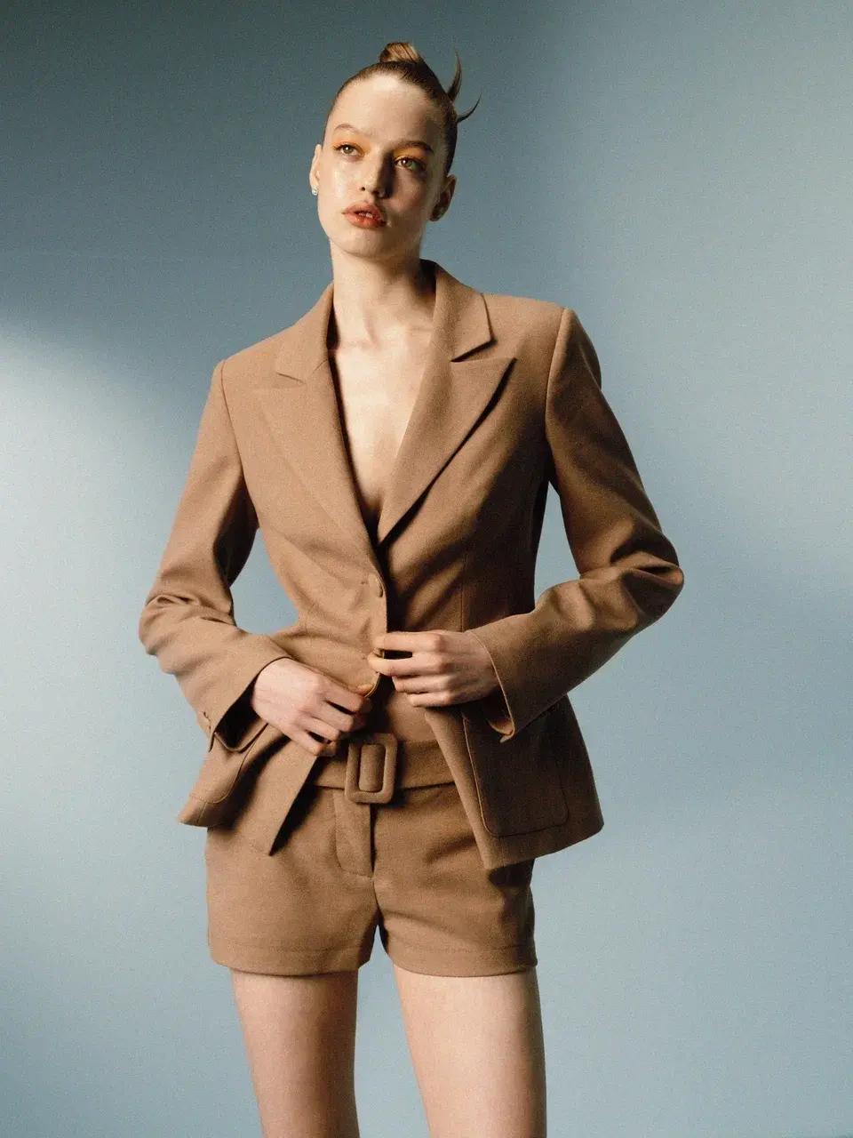 За основу взяты натуральные ткани — шерсть, хлопок и натуральная кожа, подчеркивающие философию бренда о честности материалов. Коллекция выстроена по принципу капсулы: жакеты легко сочетаются с топами и юбками, универсальный плащ — с костюмными комплектами и более мягкой базой. Большинство моделей представлены в размерной линейке XS-L, работая на идею гармоничного гардероба, где каждая вещь усиливает другую.