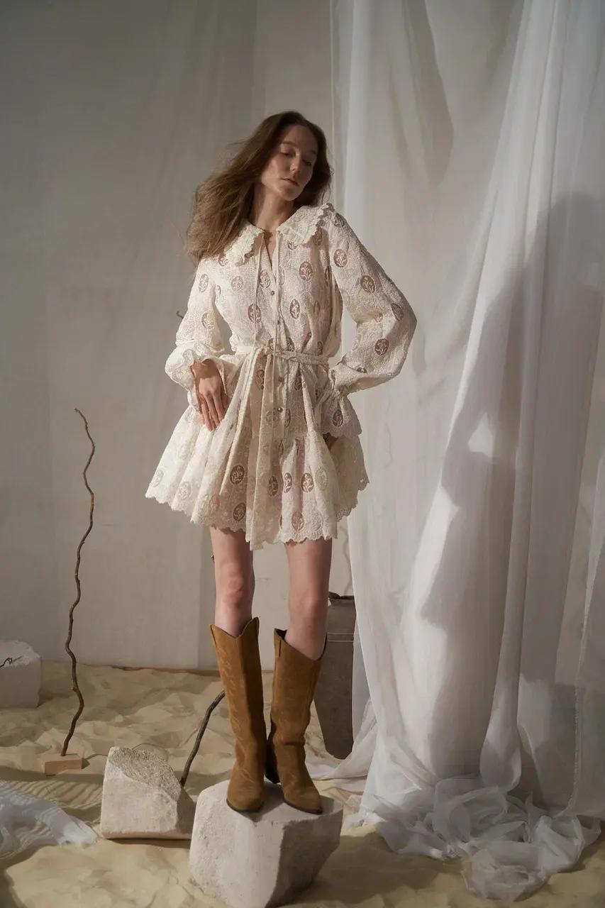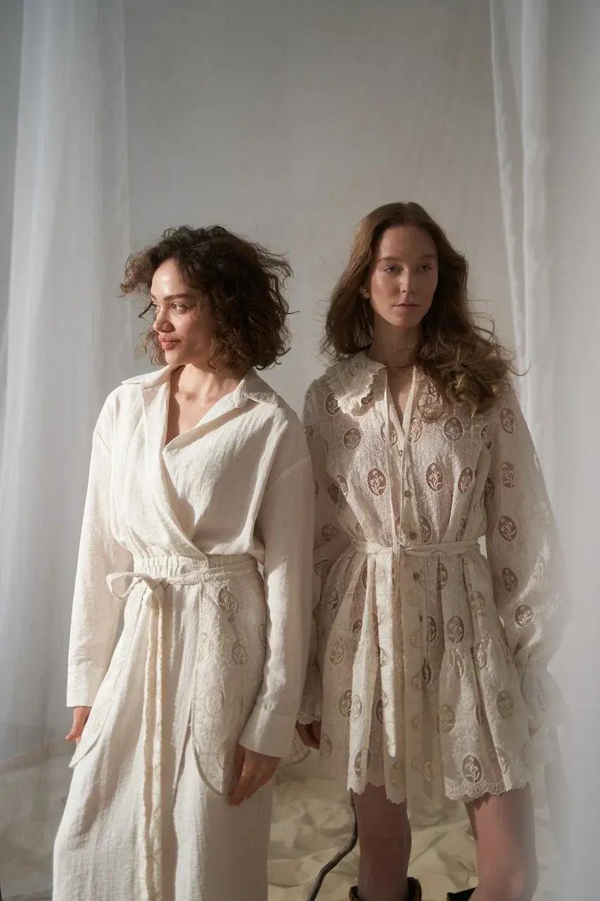 Коллекция исследует связь материала, формы и женщины через структурный продуманный крой: струящиеся платья и сарафаны, лаконичные костюмы и брюки создают уверенные женственные силуэты. Это приглашение ощутить гармонию линий, тактильную красоту благородных тканей и осознать собственную уникальную форму — выбор в пользу вневременной красоты, вдохновленной рукой мастера.