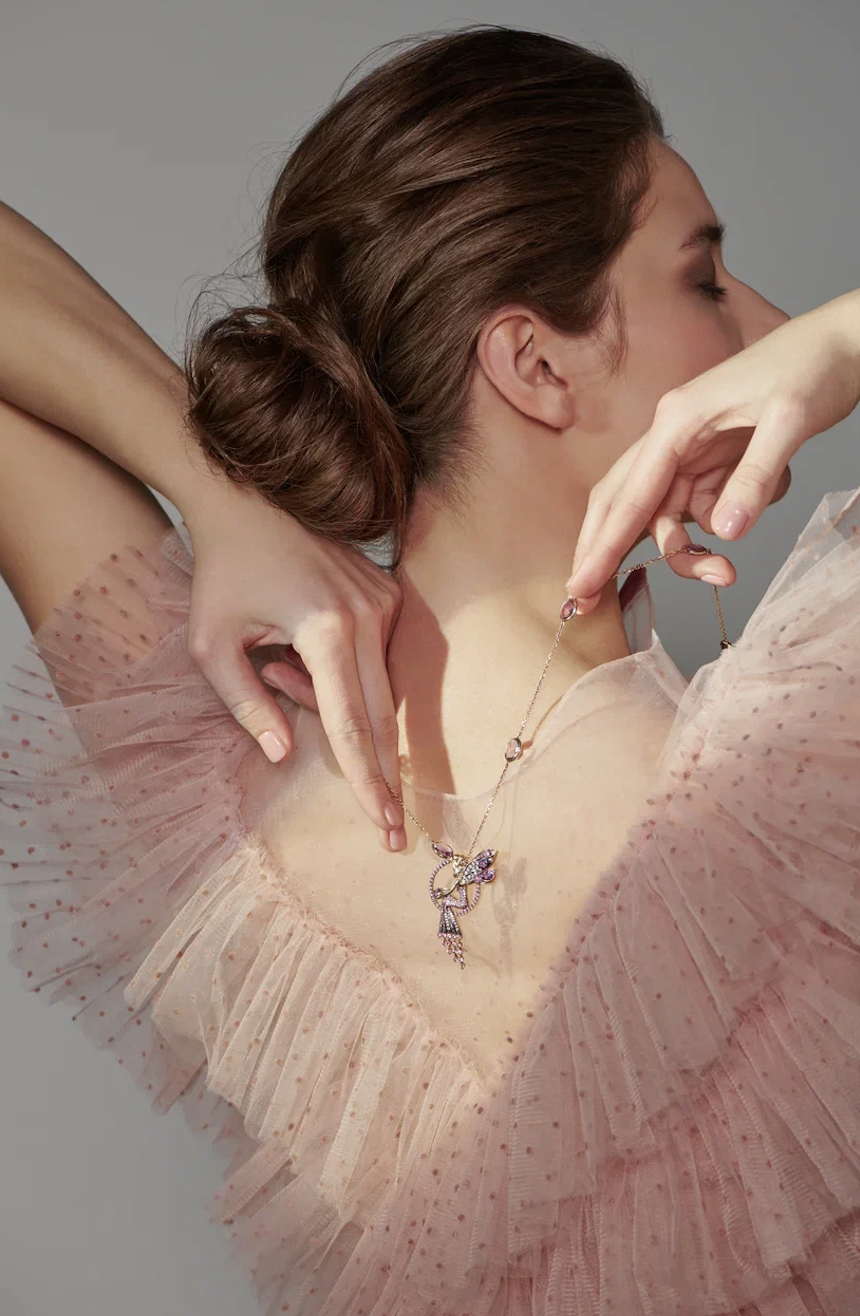 ДНК бренда сформировалось из уральского характера и европейской утонченности, вдохновленной эстетикой ар-нуво: резные камни, инталии, эмаль и символ стрекозы. Знаковая коллекция Libelle (нем. «стрекоза») стала манифестом: легкость и изящество внешней формы при внутренней прочности уральских мастеров. В коллекции — брошь с бриллиантами, аметистами и эмалью, колье с бриллиантом, серьги с культивированным жемчугом. Команда — потомственные специалисты уральской школы: геммологи, огранщики, резчики и эмальеры. «Мы даем аутентичным камням новую жизнь, — говорит Наталья. — В наших украшениях девичья нежность переплетается с мощью уральских изумрудов и малахитов».