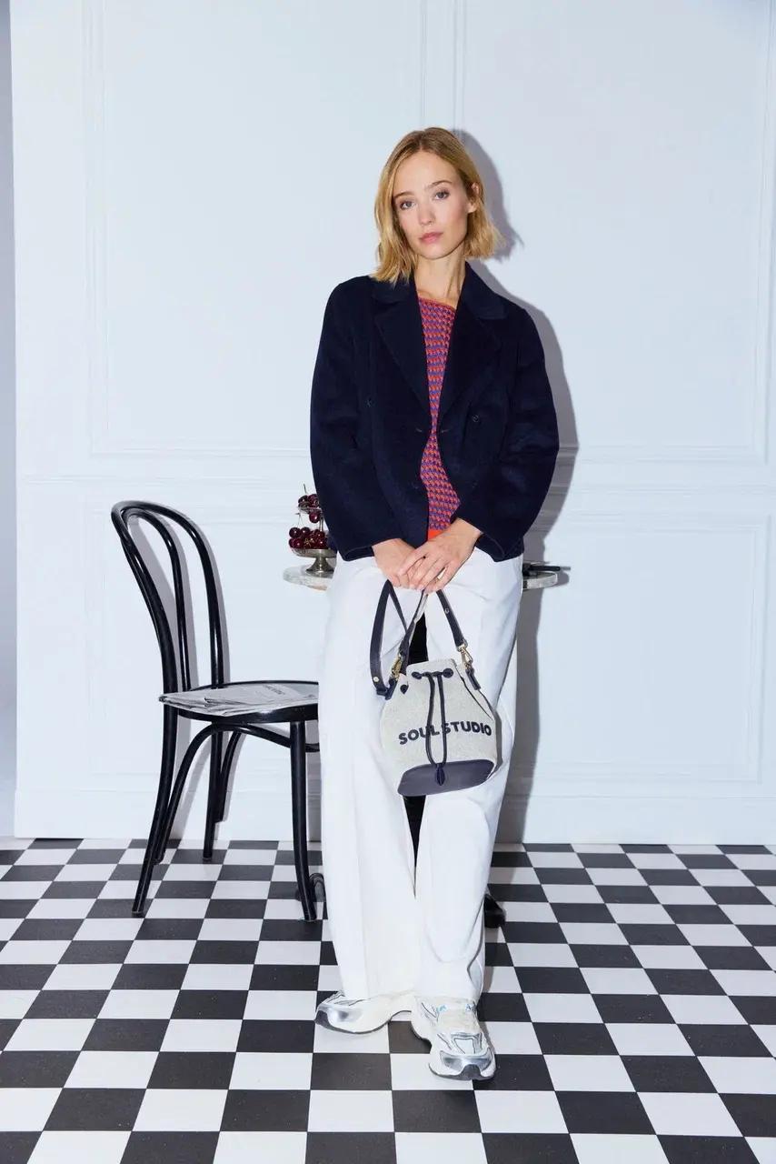 Выделяются плавные сочетания трикотажа и денима, тонкая полоска «пинстрайп», укороченные тренчи из денима и экокожи, изделия из натуральной кожи и замши. Костюмы с брюками с двойными складками добавляют образам утонченности, а аксессуары становятся выразительным завершающим акцентом. Коллекция создана для тех, кто ценит легкость в движении и уверенность в каждом образе.