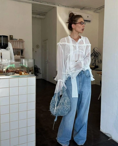 Как носить: надевайте поверх кружевного бралетт или топа в тон коже. Комбинируйте с брюками с высокой талией, юбкой-карандаш или джинсами. Блузы с галстуком подходят для офисных образов (с топом под низ), а воздушные модели — для вечерних выходов. Не бойтесь многослойности: прозрачные ткани можно наслаивать друг на друга для более эффектного результата.
