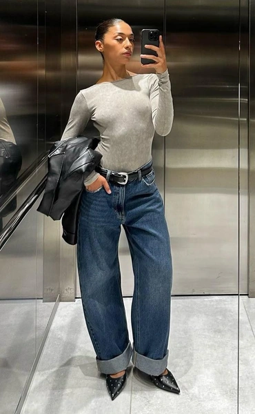 Носить объемные модные джинсы 2026 лучше с облегающим верхом или заправленной рубашкой: это балансирует пропорции. Обувь на каблуке или платформе визуально вытягивает ногу — актуально, если джинсы широкие по всей длине (читайте также: Привет из нулевых: за этой обувью выстроятся в очереди весной 2026).